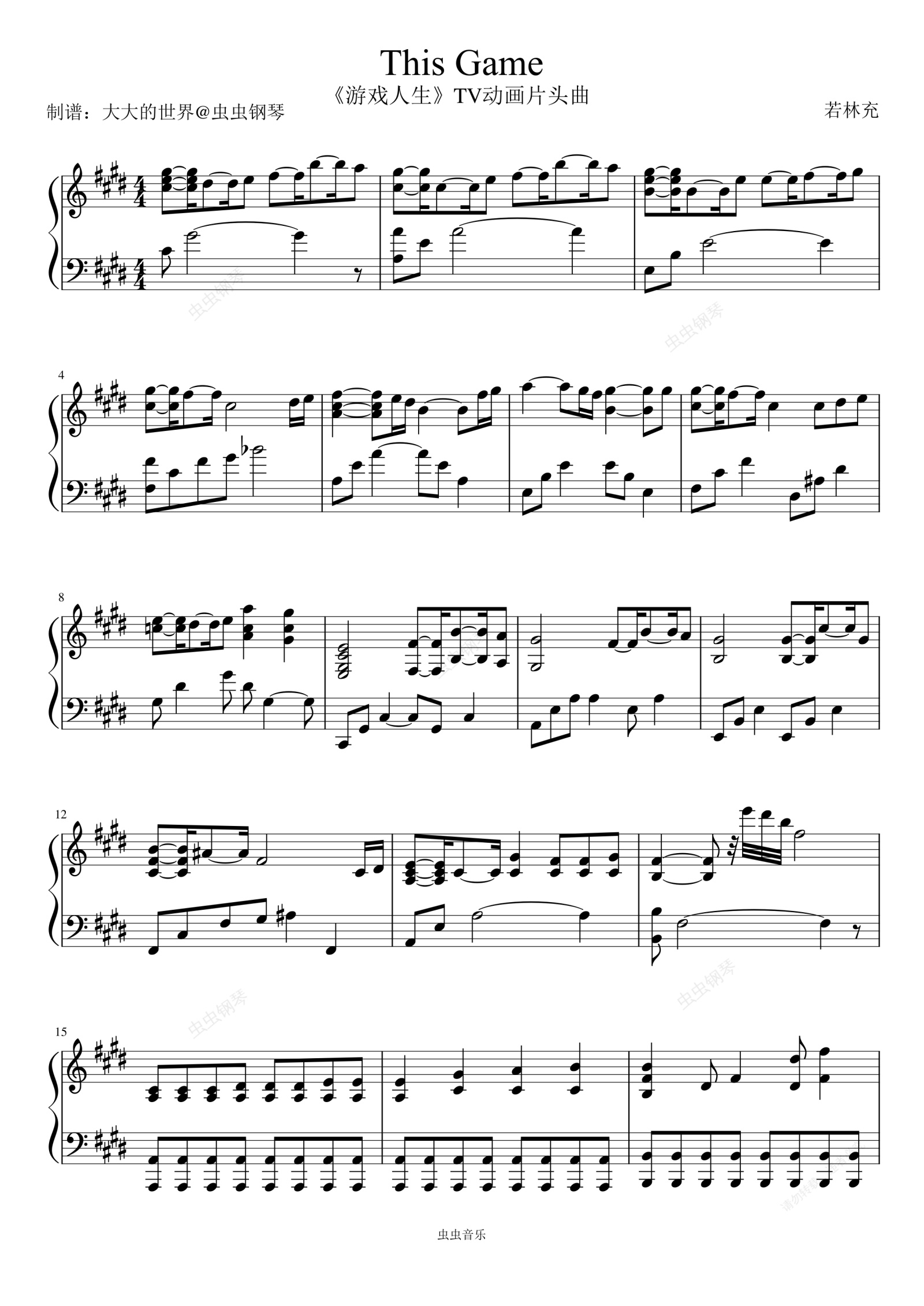 钢琴谱:This Game 《游戏人生》TV动画片头曲