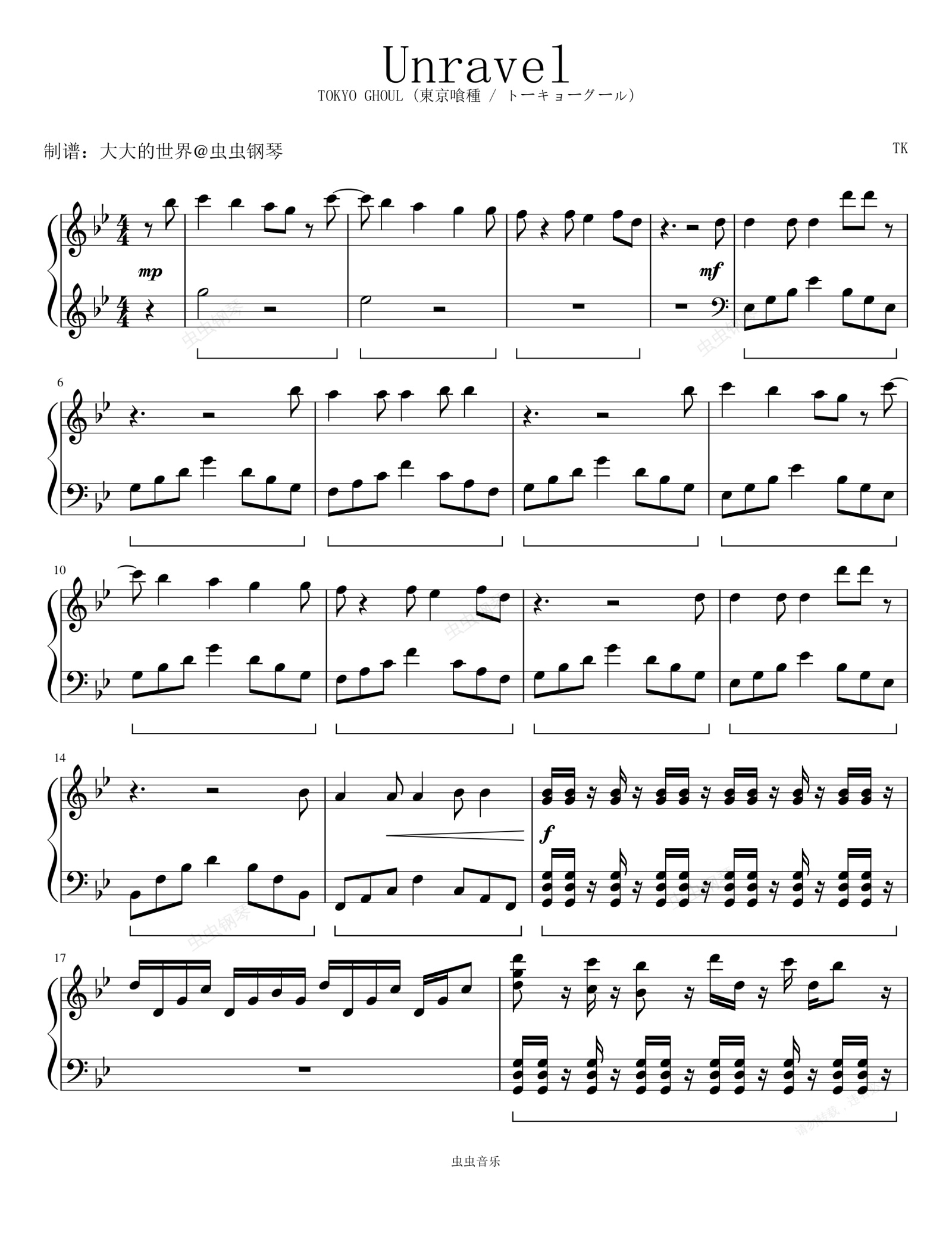 钢琴谱:《Unravel》东京喰种 - 简易版