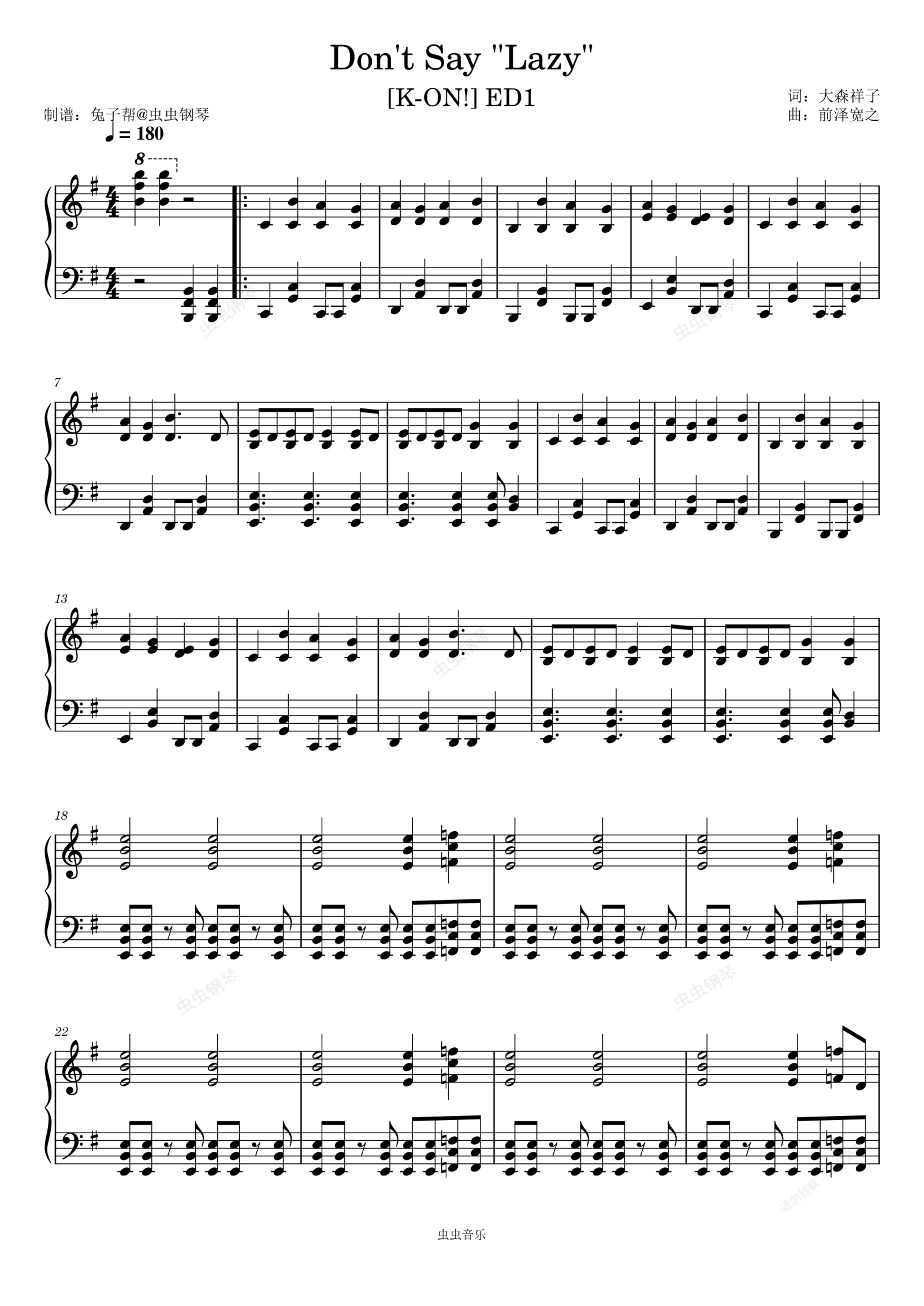 钢琴谱:[K-On!] Don't Say “Lazy” (Full ver.)【樱高轻音部第一季ED】