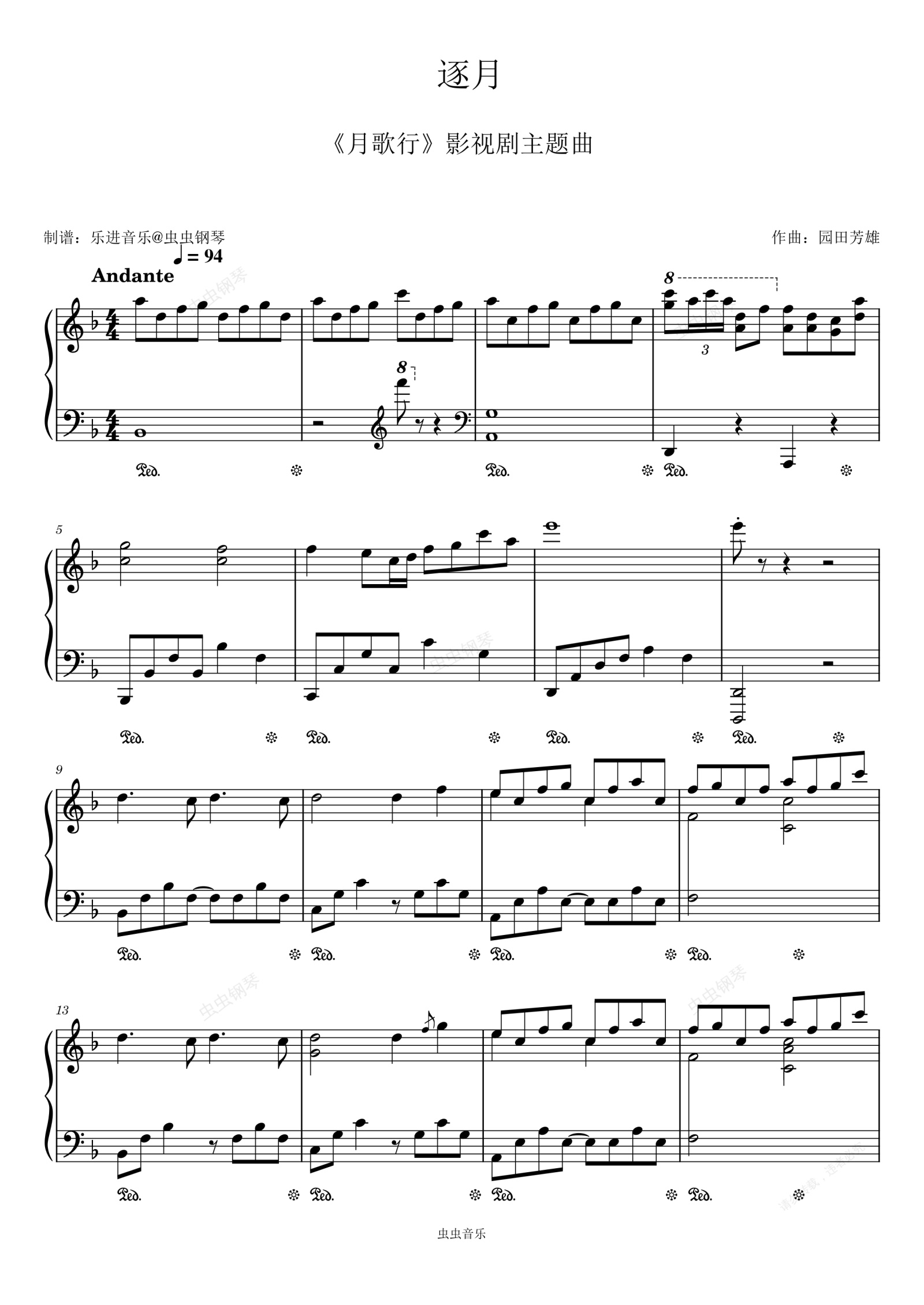 钢琴谱:周深《逐月》原调演奏版