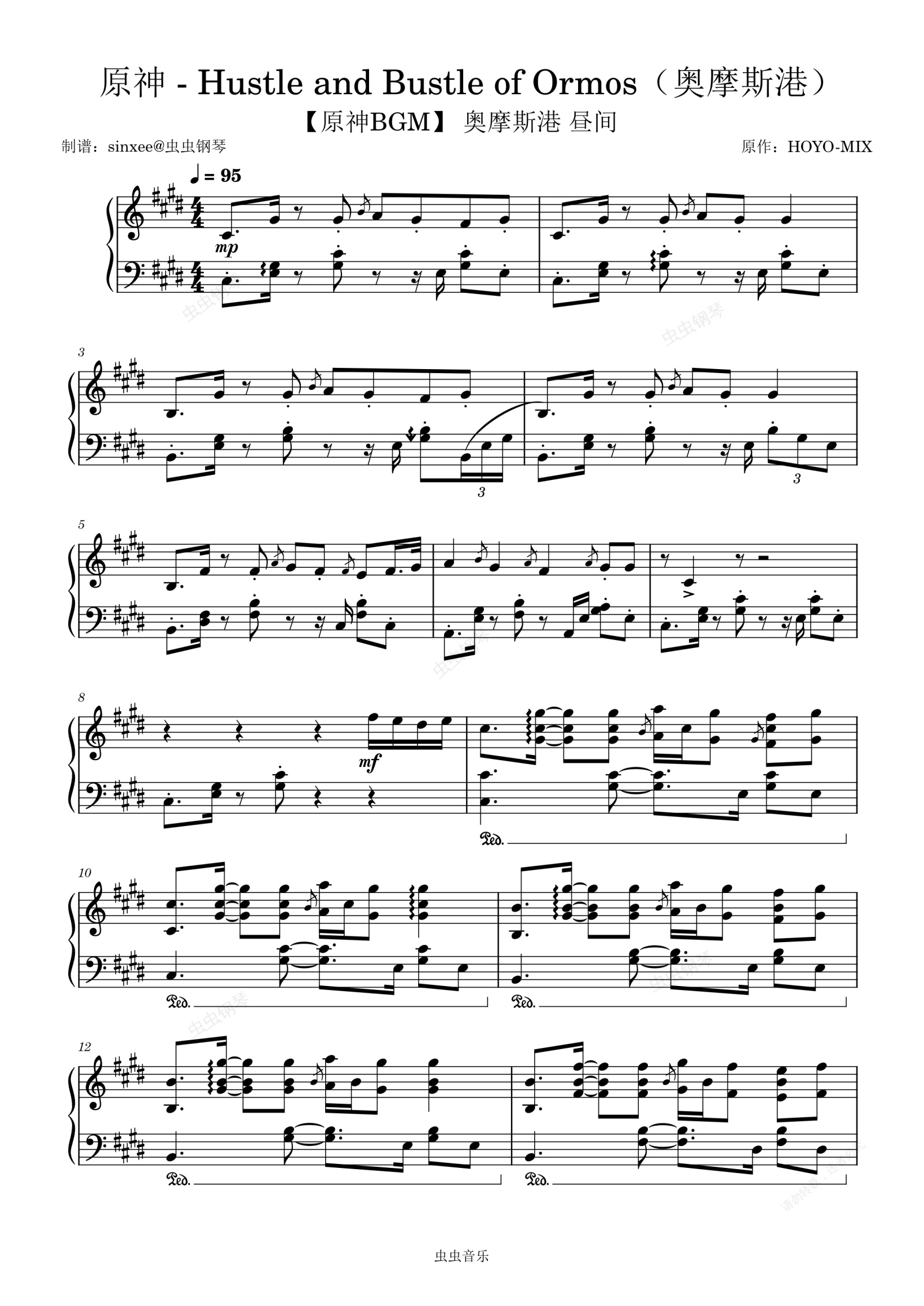 钢琴谱:原神 BGM- Hustle and Bustle of Ormos(奥摩斯港)