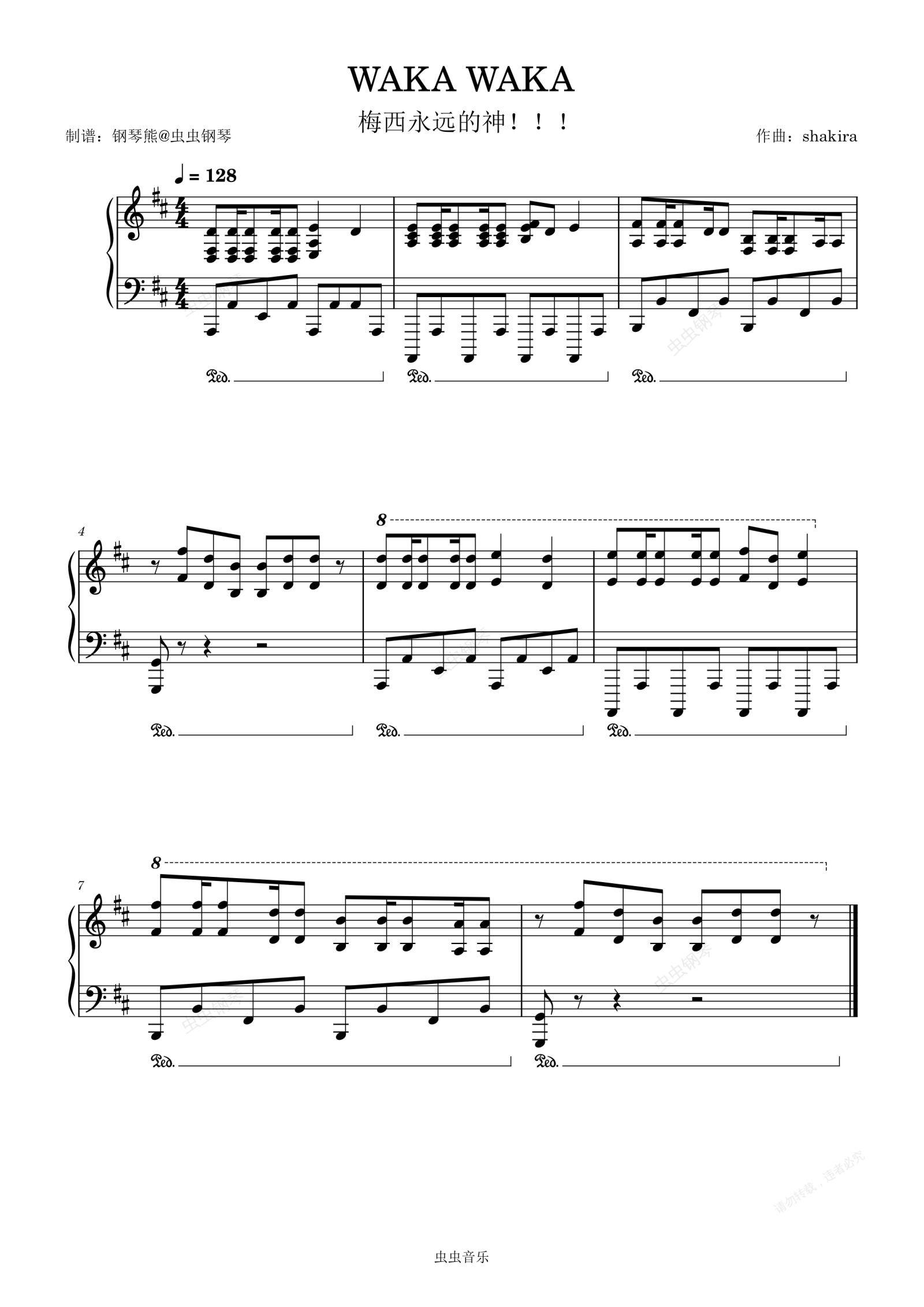 钢琴谱:《waka waka》抖音 苏卿颜版~ 喜欢的兄弟记得给谱子点点收藏👇👇👇