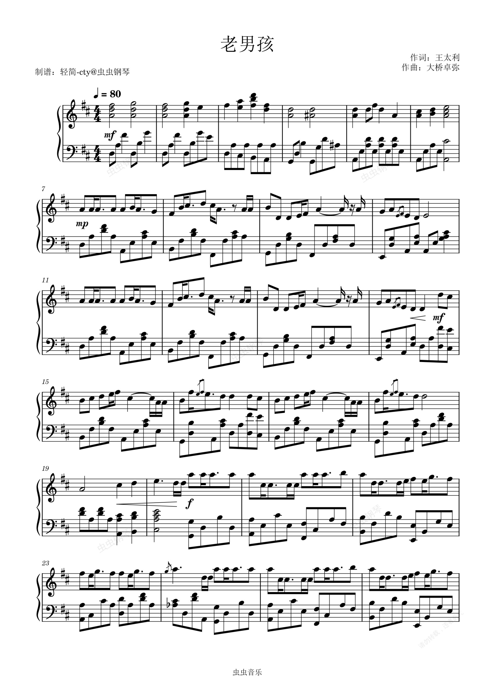 钢琴谱:老男孩-筷子兄弟(D调原版