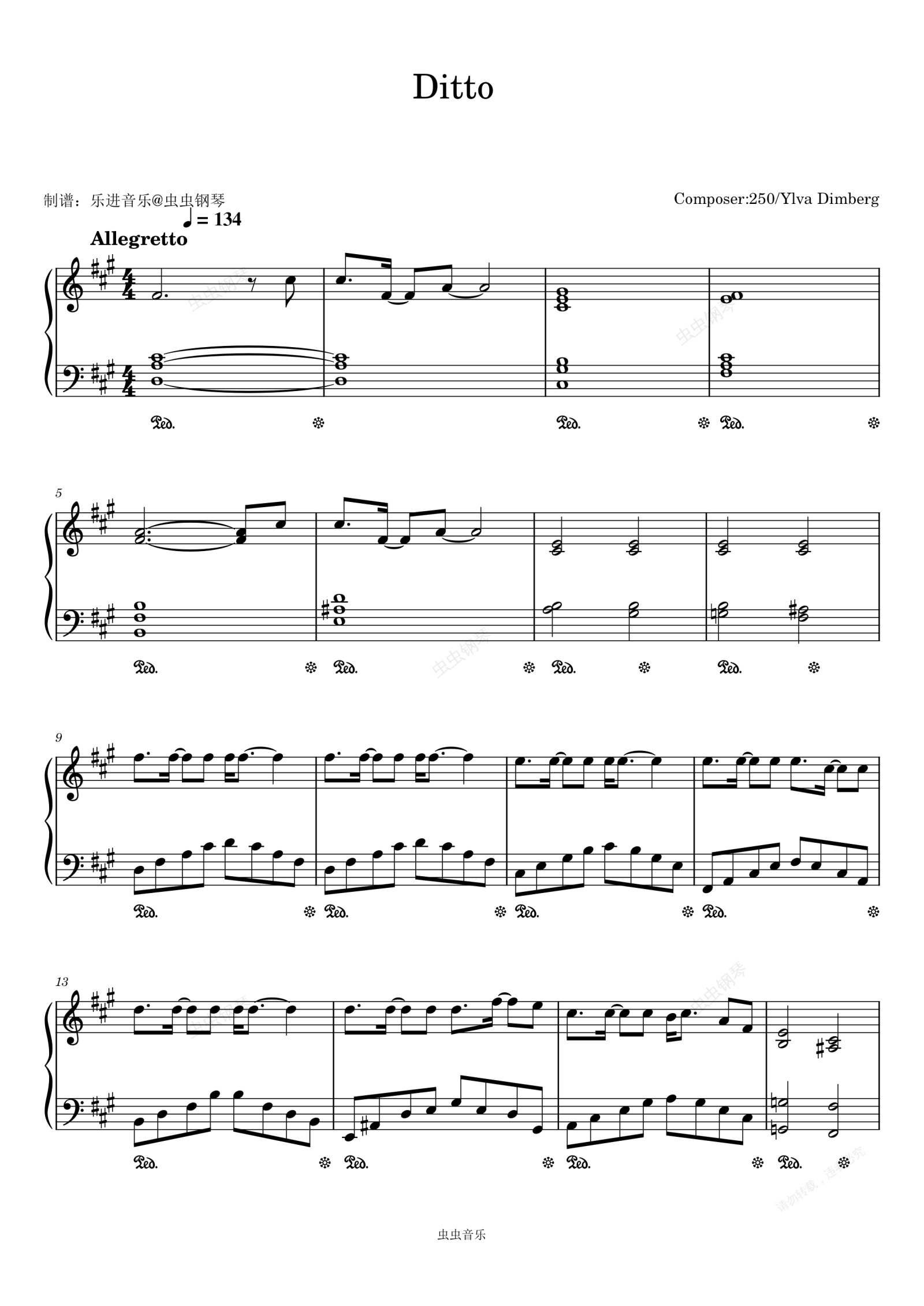 钢琴谱:《Ditto》原调中等难度 90%还原