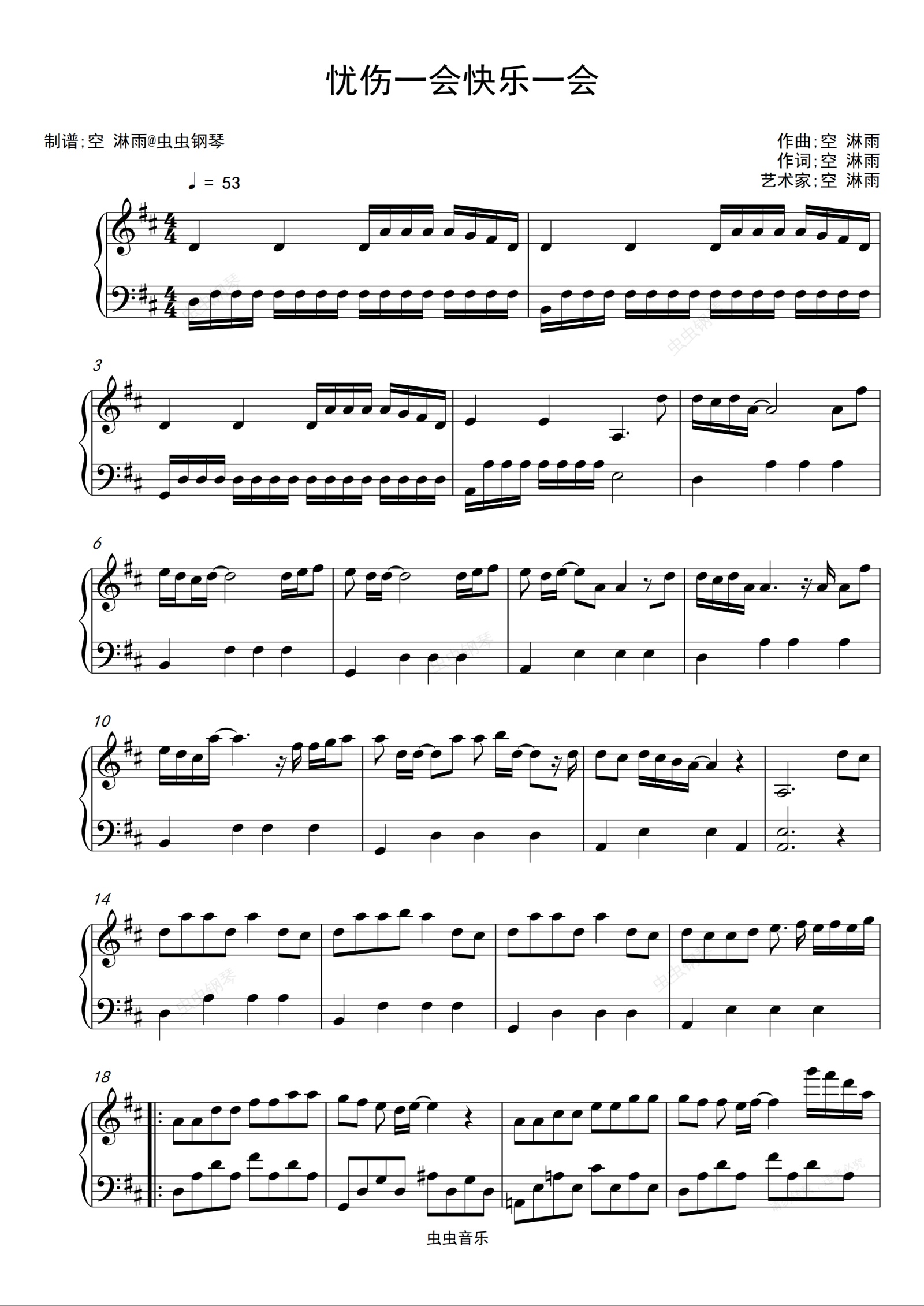 钢琴谱:(原创作品)忧伤一会快乐一会