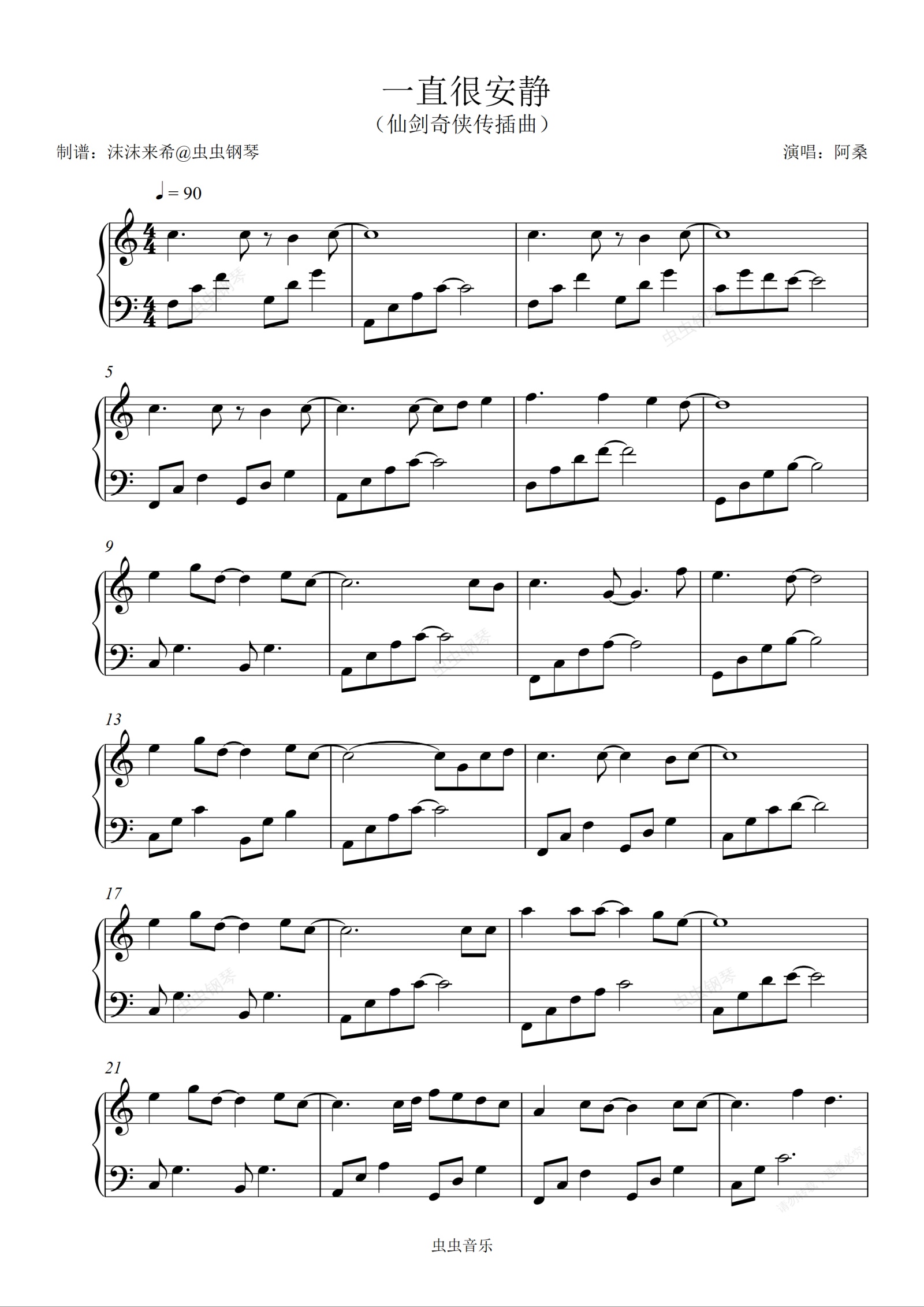 钢琴谱:仙剑奇侠传《一直很安静》完整版 C调 初学者
