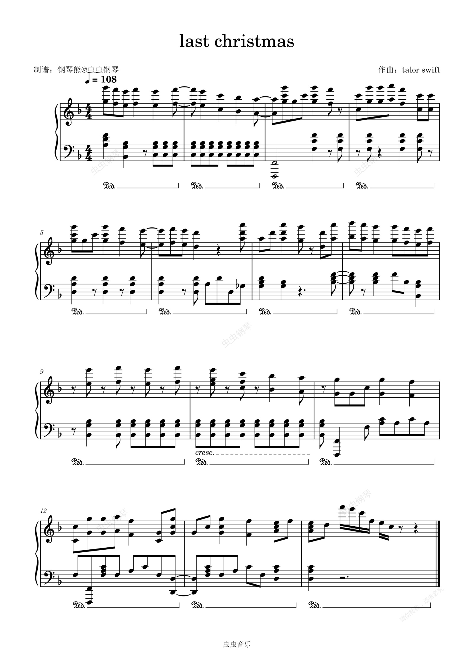 钢琴谱:《last christmas》爵士乐版~祝大家们圣诞节快乐~~~喜欢谱子的兄弟记得点收藏哦~👇👇👇