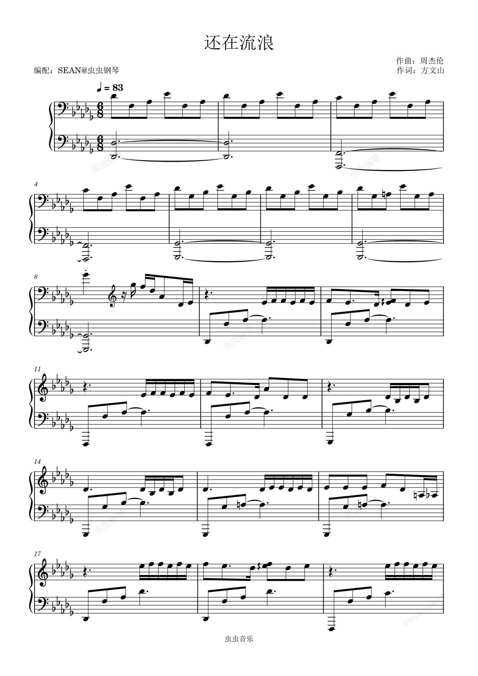 钢琴谱:《还在流浪》周杰伦-F#调(唯美简约版)【SEAN编配】