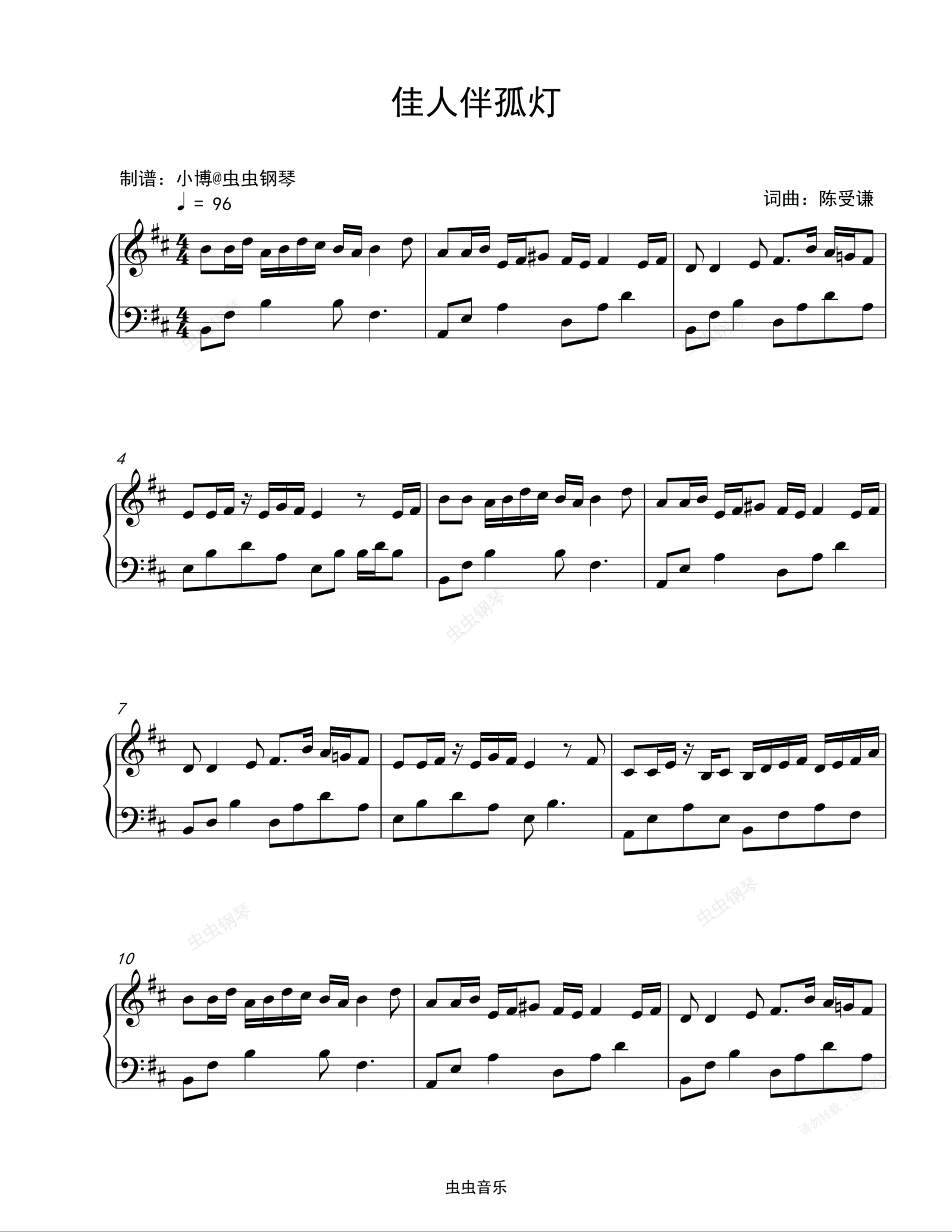 钢琴谱:佳人伴孤灯-春思-两宫皇太后插曲 -陈受谦