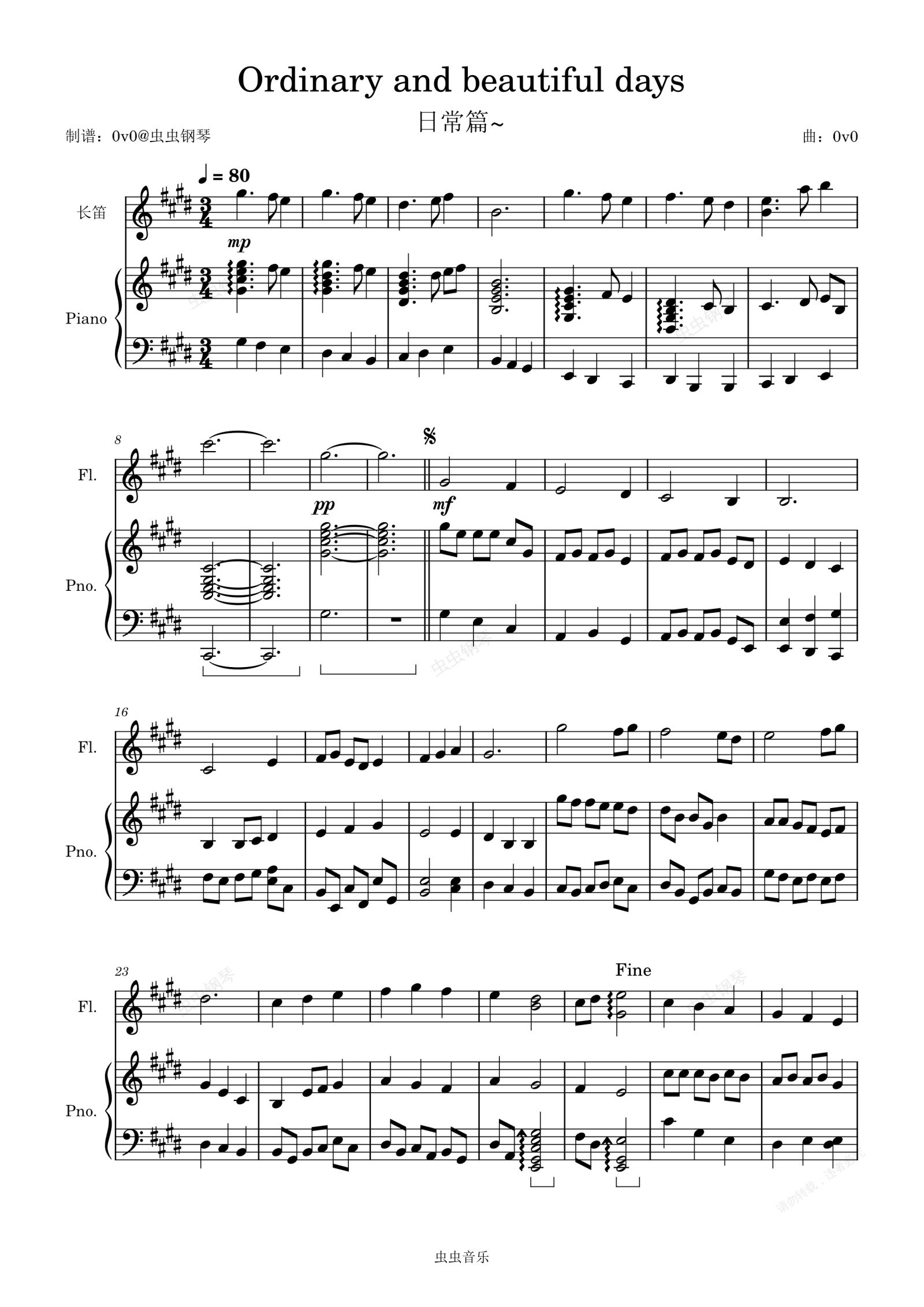 钢琴谱:Ordinary and beautiful days