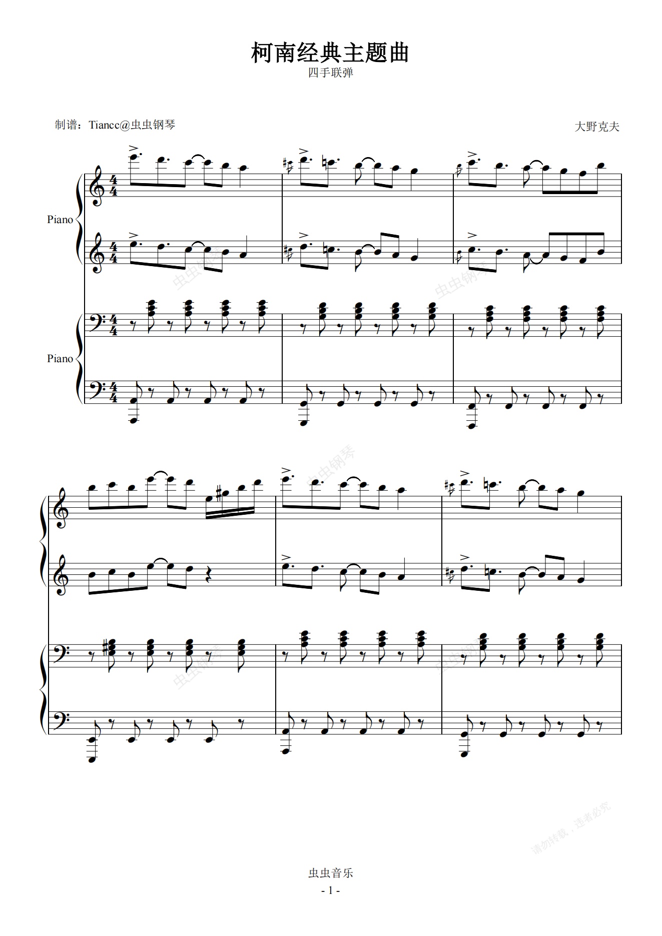 钢琴谱:《经典柯南主题曲》四手联弹优化版,这回简单一点了~