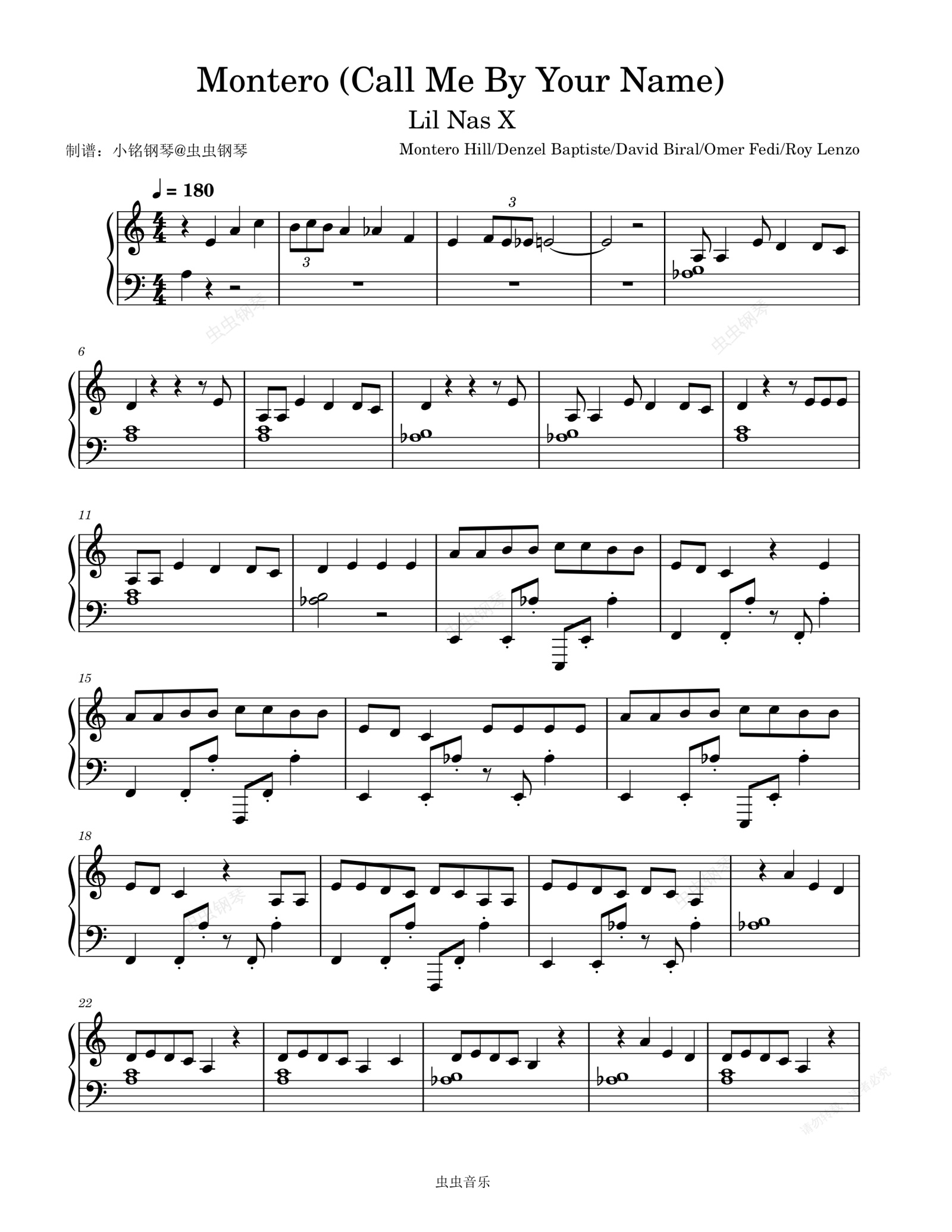钢琴谱:MONTERO (Call Me By Your Name) (But Lil Nas X Makes All The Sounds With His Mouth|Explicit) - Lil Nas X