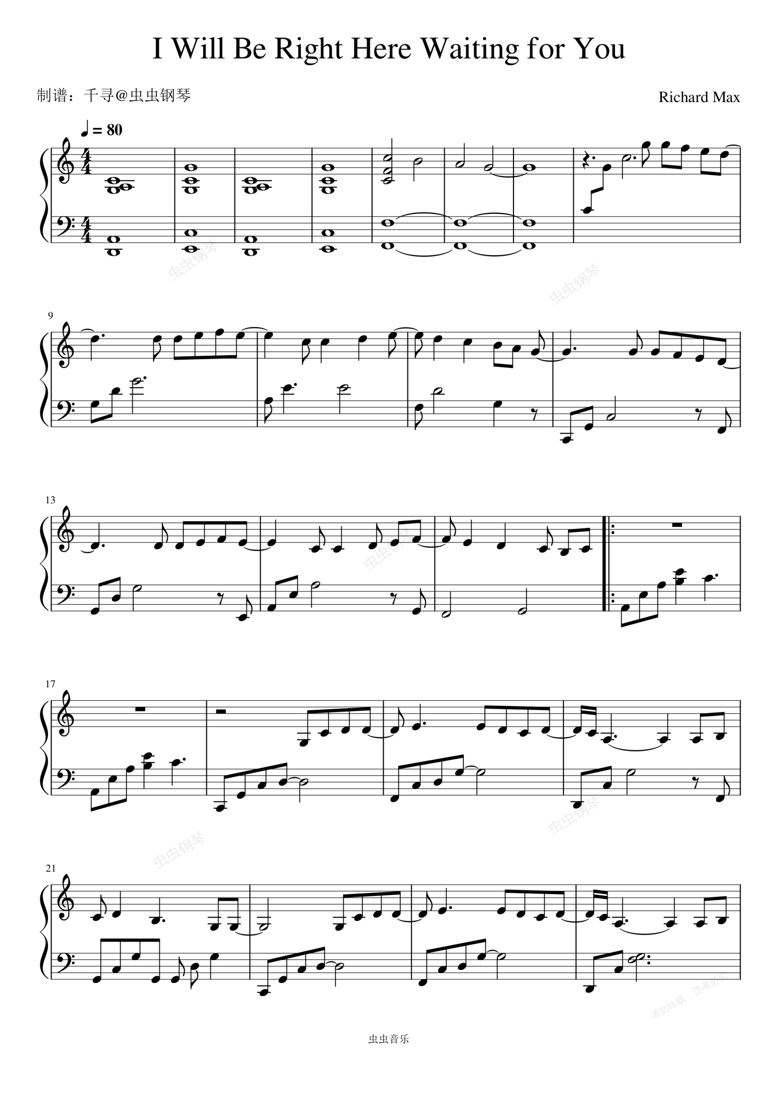 钢琴谱:I Will Be Right Here Waiting for You - Mark Richards
