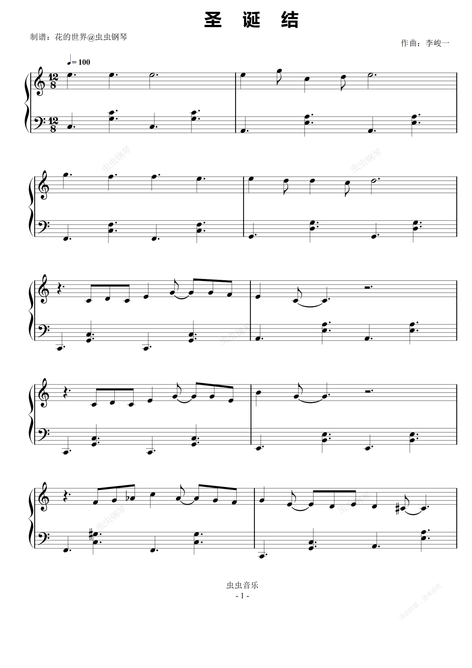 钢琴谱:圣诞结 C调简易版  陈奕迅