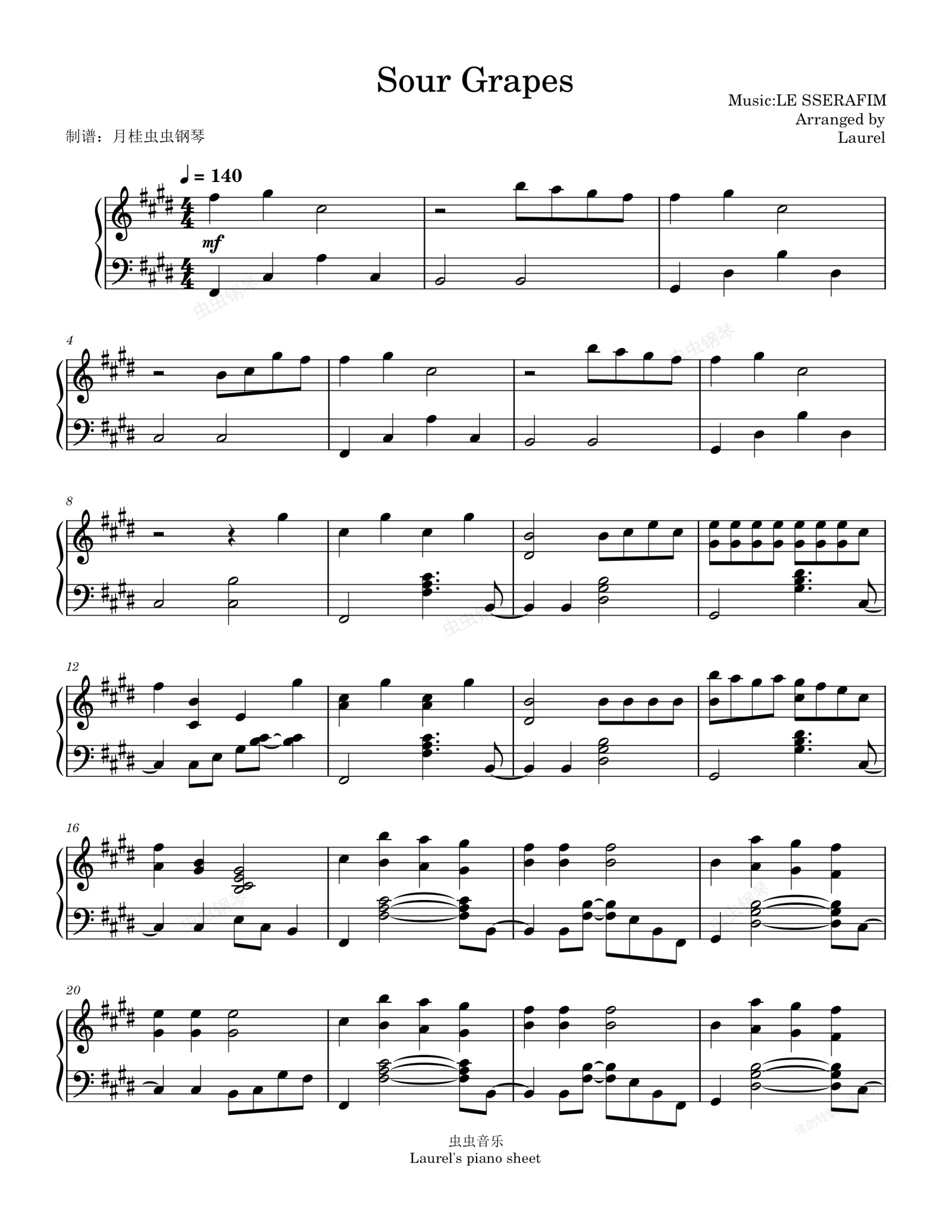 钢琴谱:Sour Grapes-LE SSERAFIM专辑《FEARLESS》收录曲