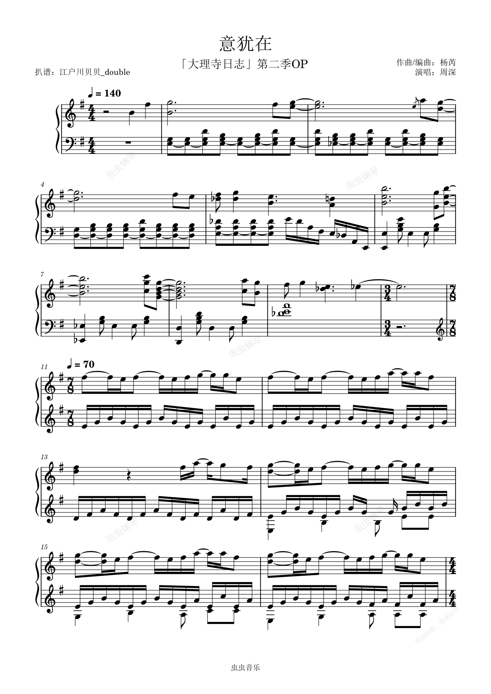 钢琴谱:【大理寺日志】《意犹在》第二季主题曲(周深)