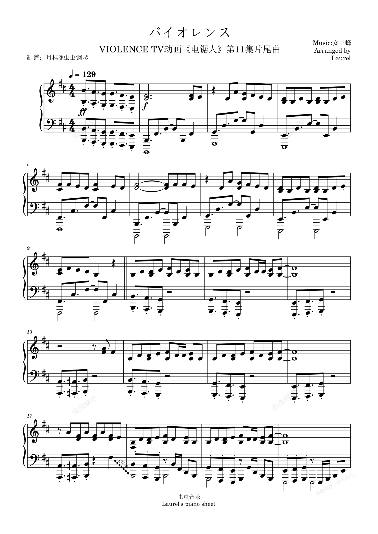 钢琴谱:バイオレンス(VIOLENCE)-TV动画《电锯人》第11集片尾曲完整版