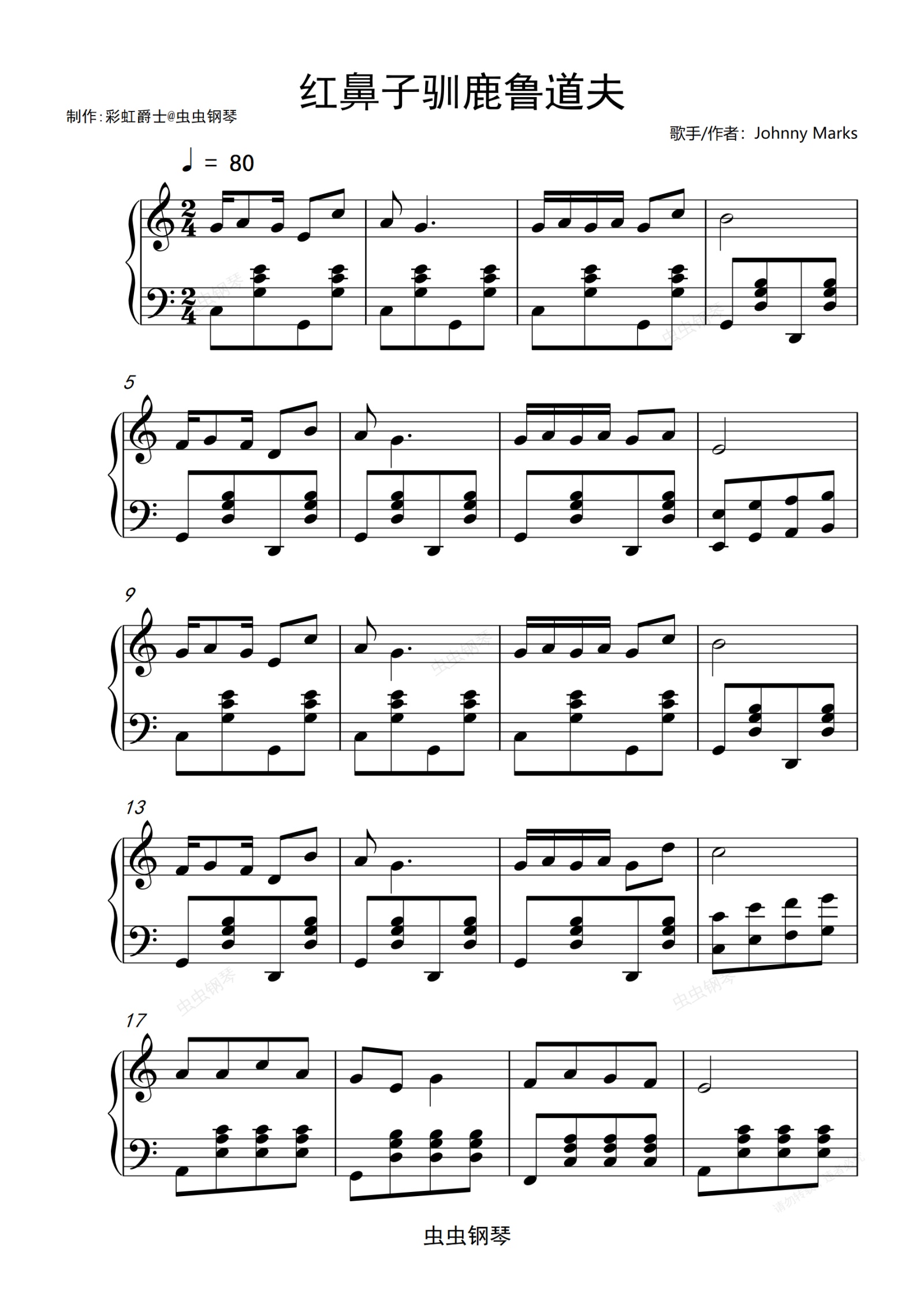 钢琴谱:鼻子驯鹿鲁道夫 钢琴 简单