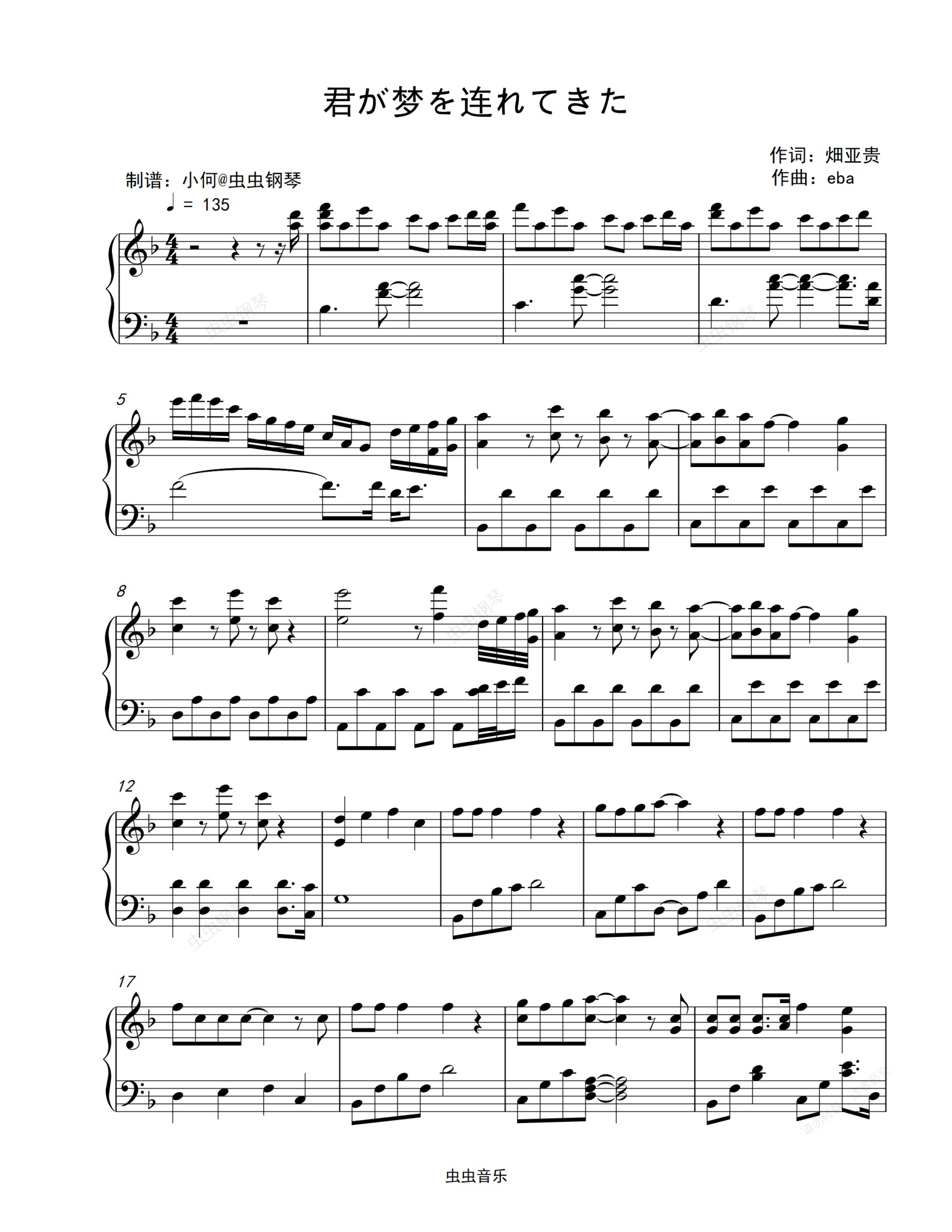 钢琴谱:君が梦を连れてきた-《樱花庄的宠物女孩》(さくら荘のペットな彼女)OP-高森奈津美/ 中津真莉子 /茅野爱衣