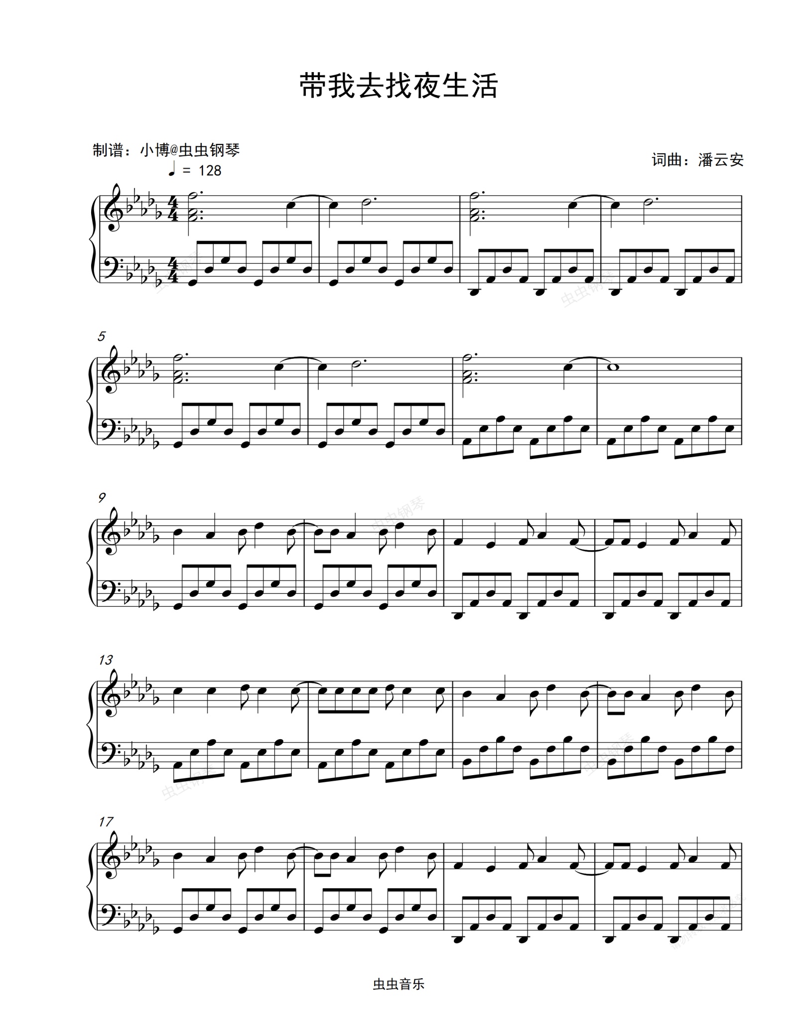 钢琴谱:带我去找夜生活-简单版-如果你还没有睡如果我还不停追 -告五人