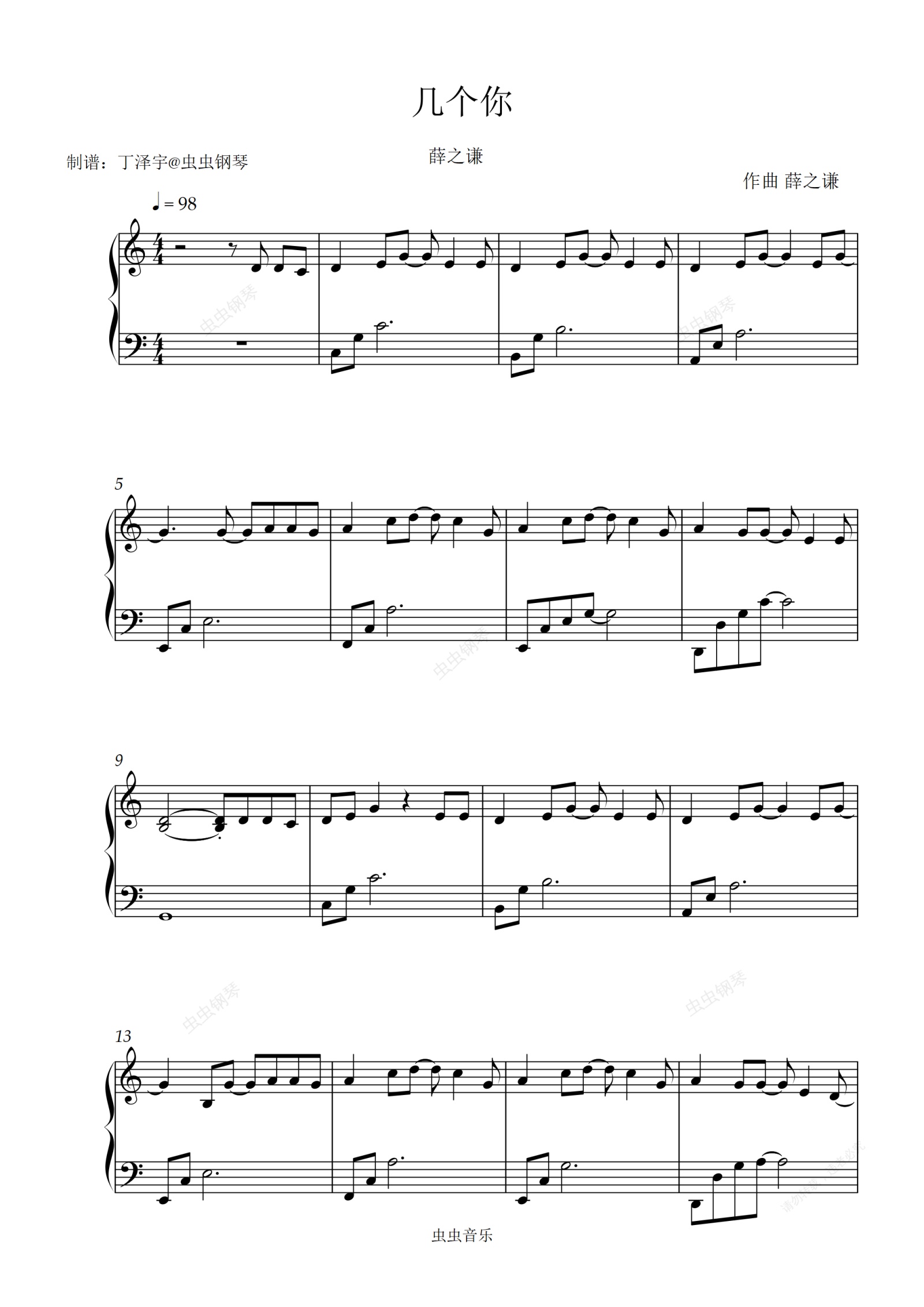 钢琴谱:几个你-薛之谦