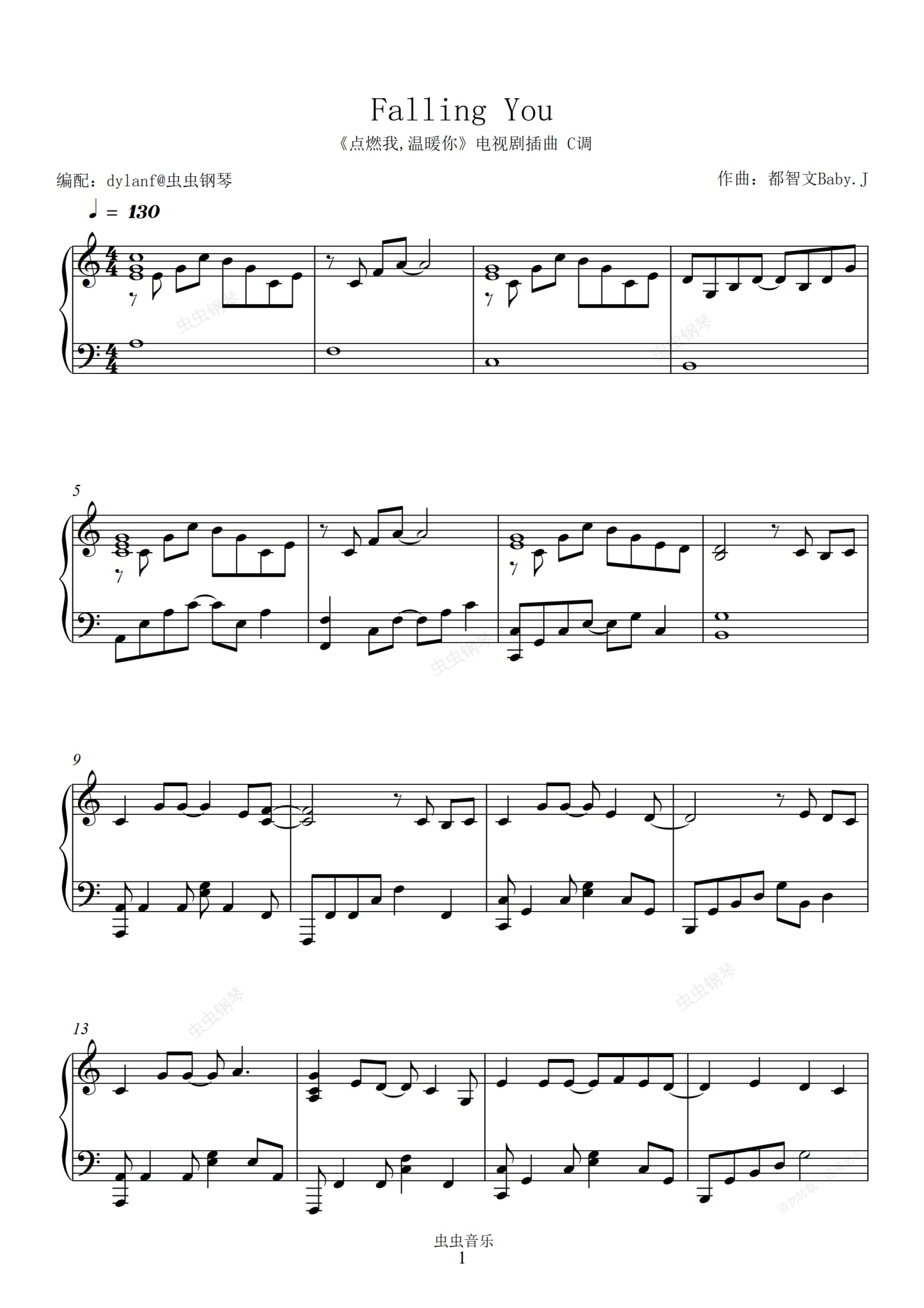 钢琴谱:C调好弹Falling You《点燃我,温暖你》电视剧插曲 都智文Baby.J