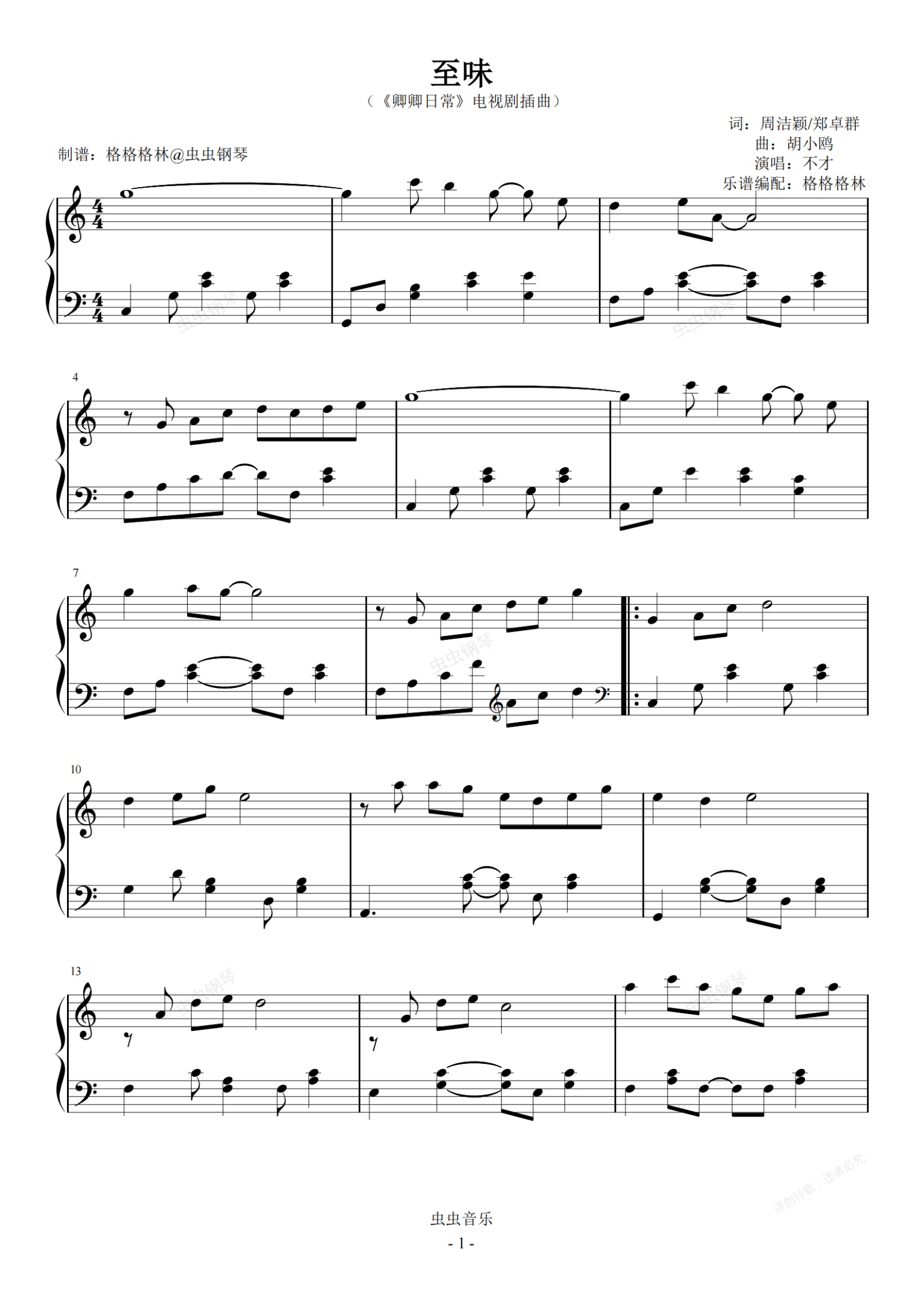 钢琴谱:至味-不才(c调)