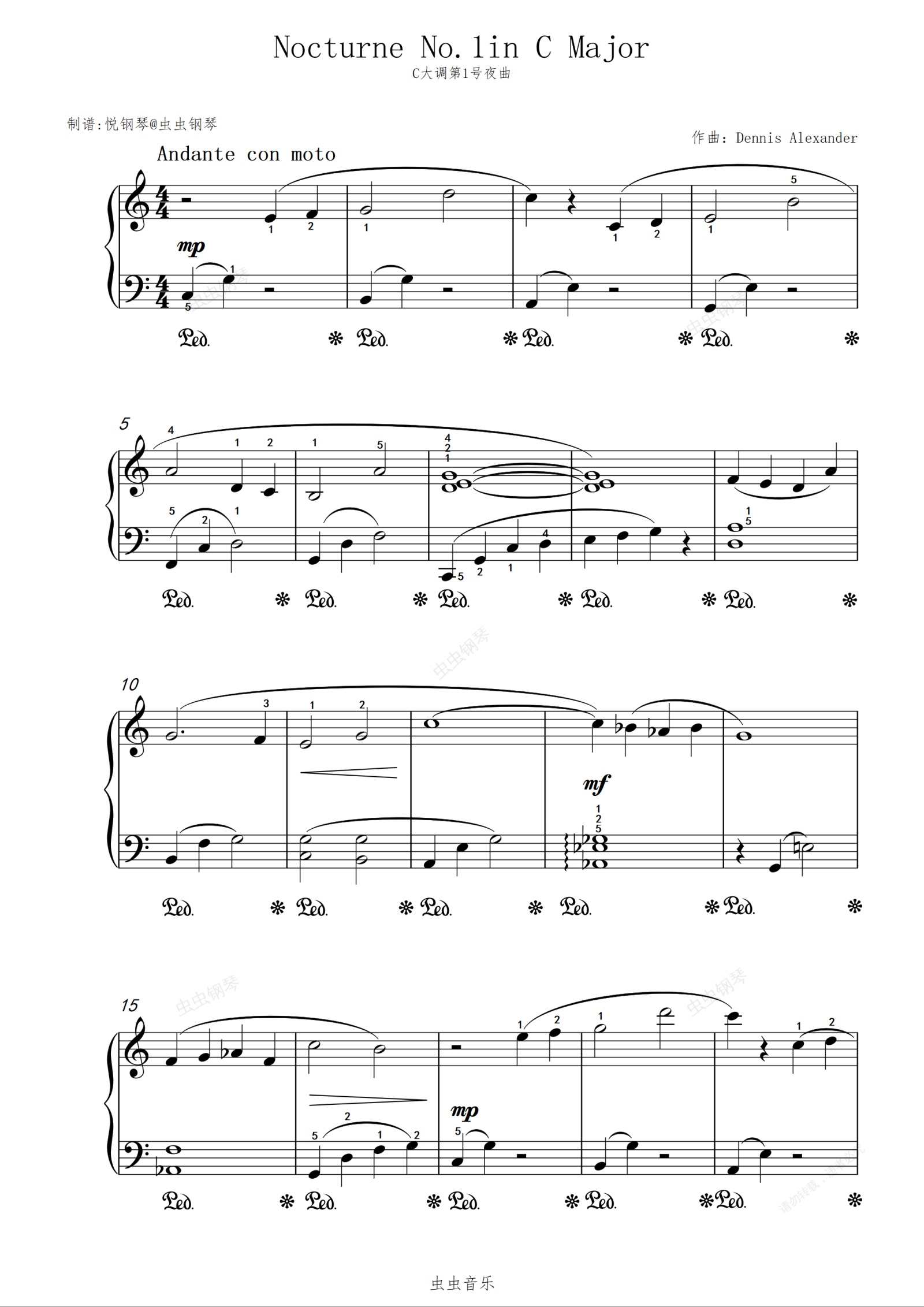 钢琴谱:C大调第1号夜曲//Nocturne No. 1 in C Major【治愈小曲,唯美抒情】