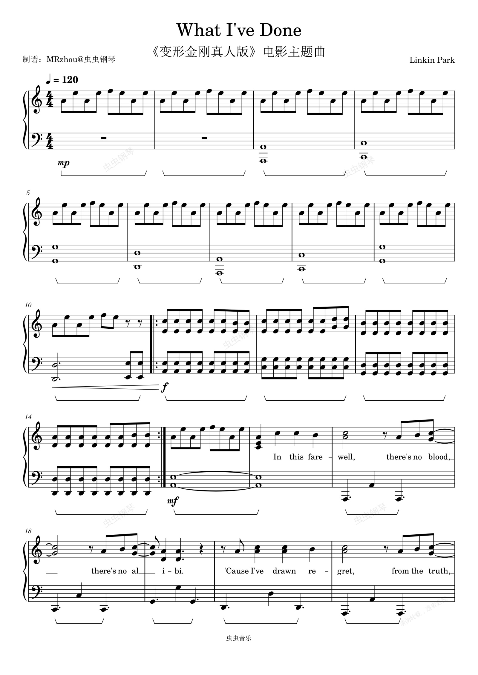 钢琴谱:What I've Done - Linkin Park (林肯公园)
