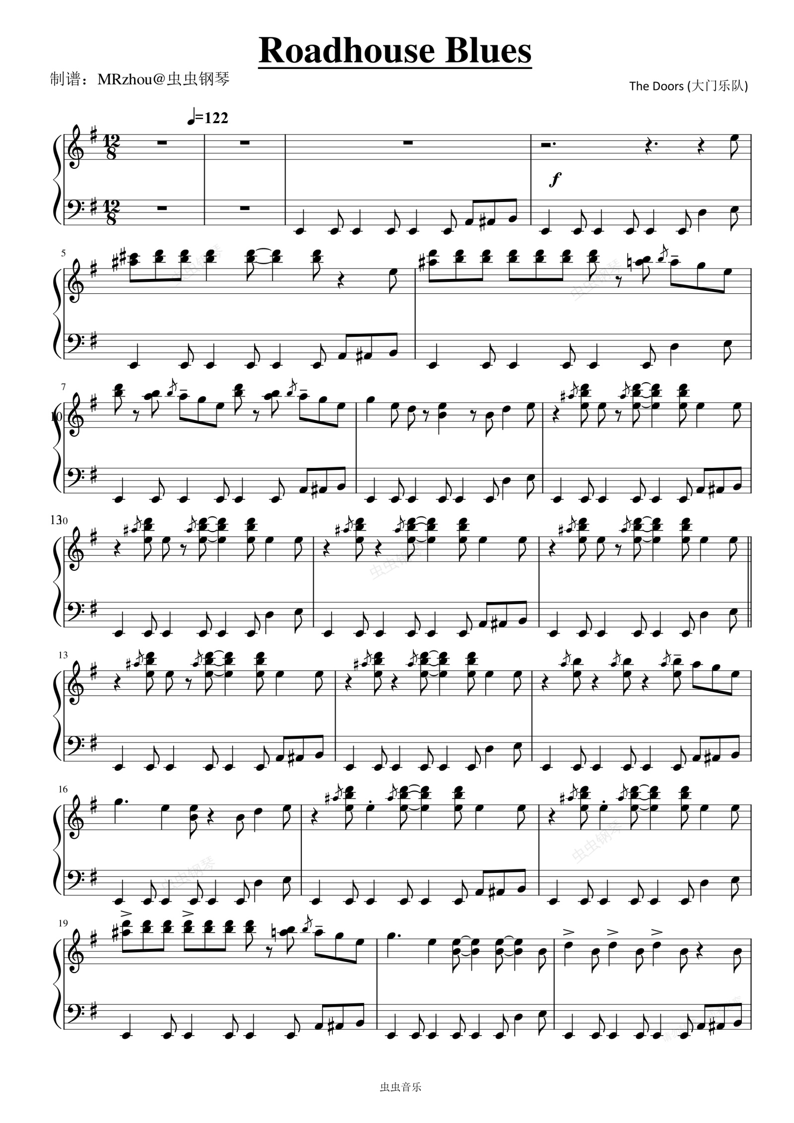 钢琴谱:Roadhouse Blues - The Doors (大门乐队)