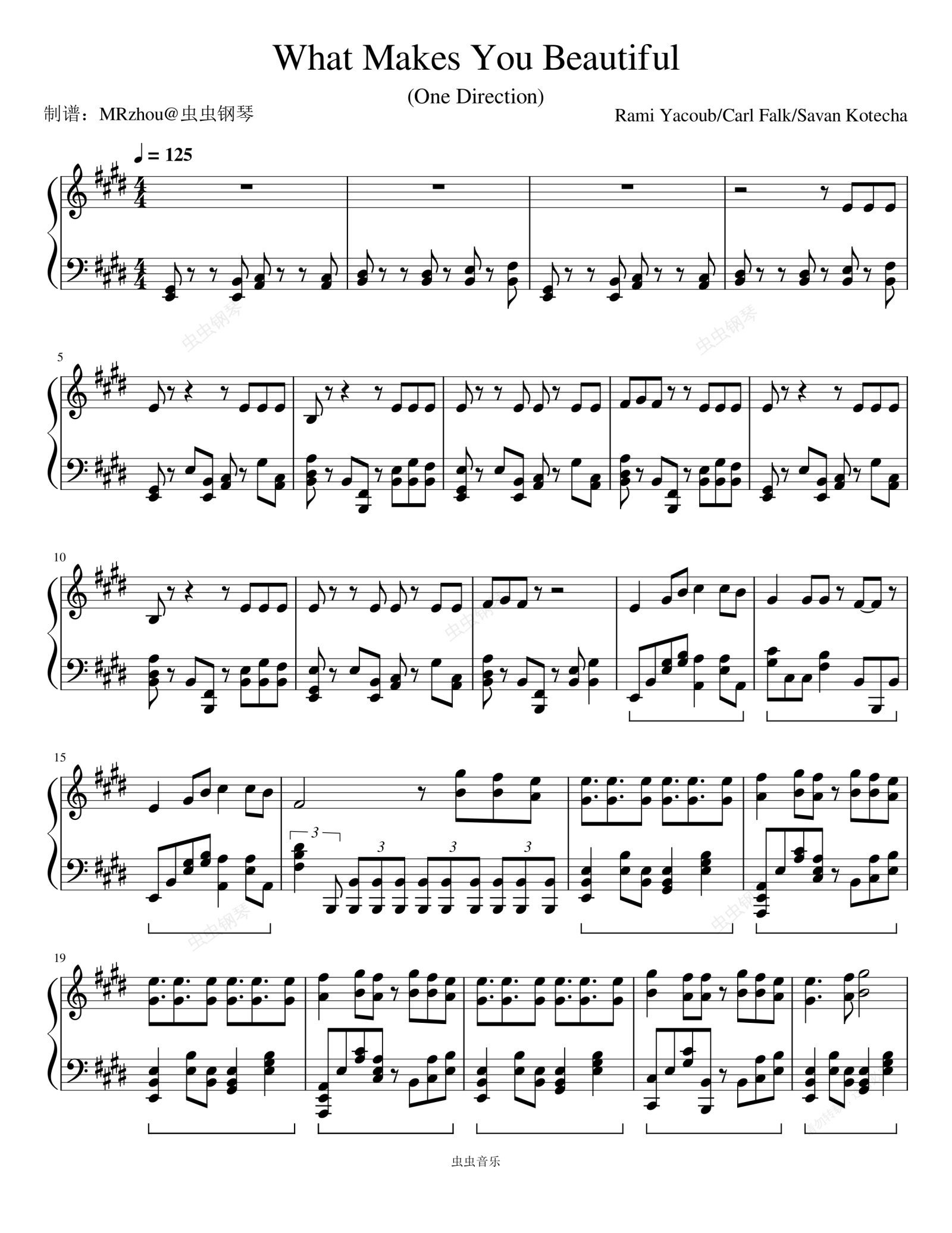 钢琴谱:What Makes You Beautiful - One Direction