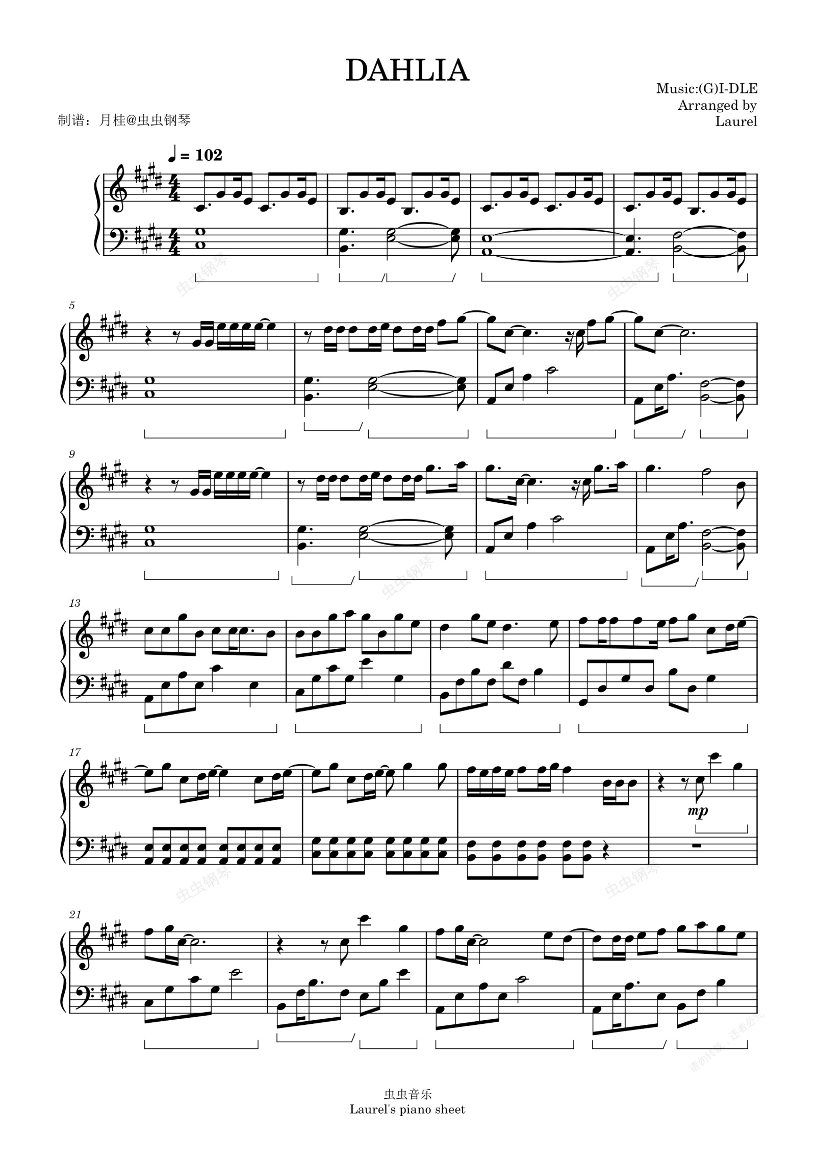 钢琴谱:DAHLIA-(G)I-DLE专辑《I burn》收录曲