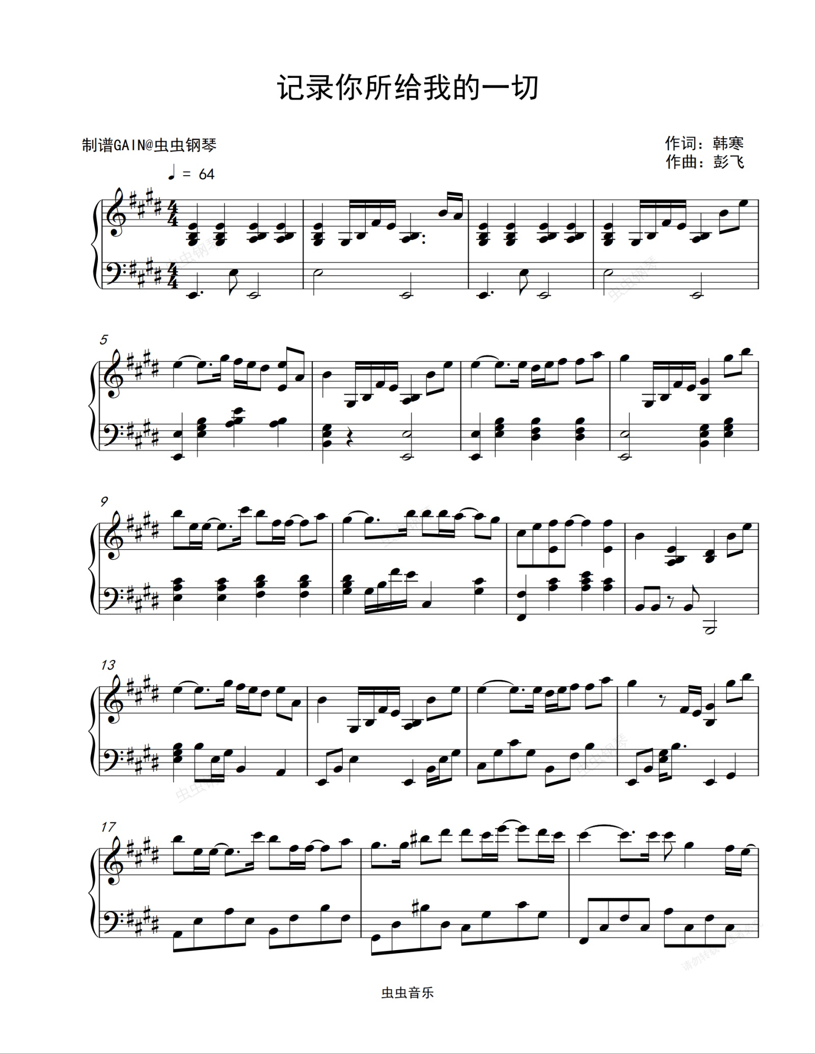 钢琴谱:记录你所给我的一切-断桥推广曲-王俊凯