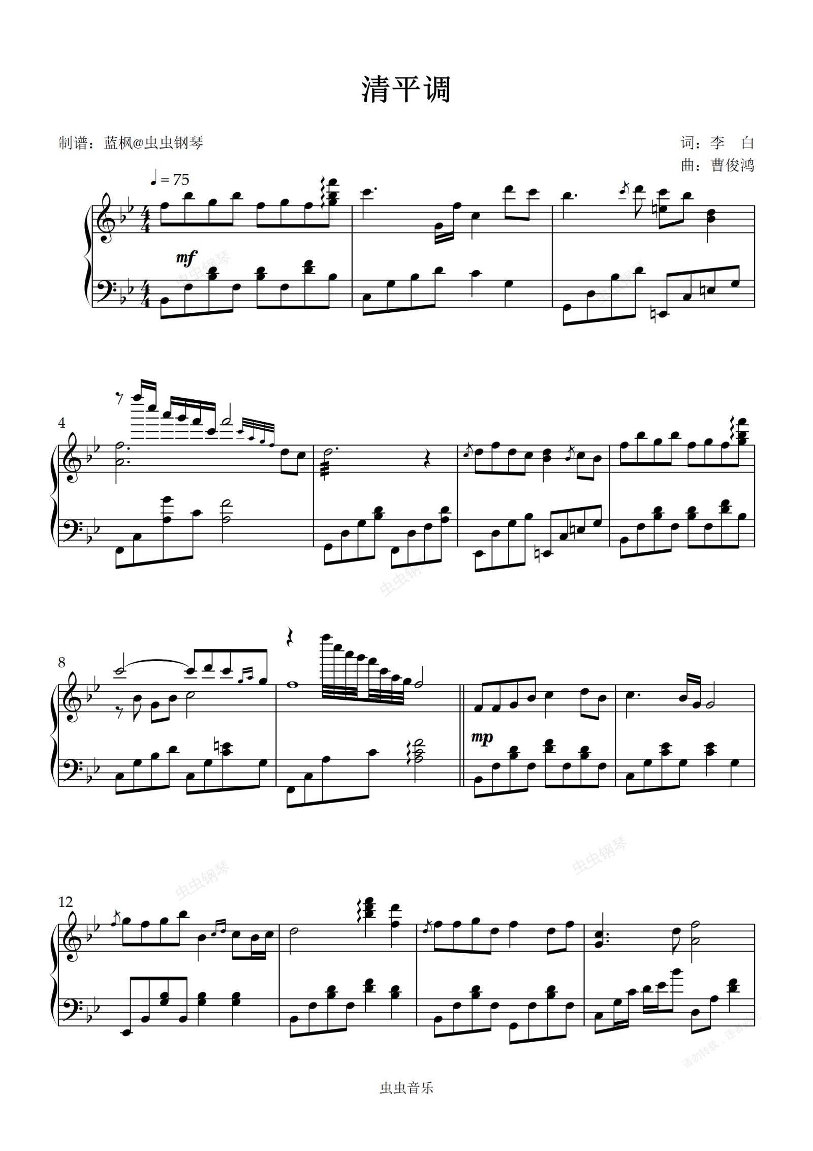 钢琴谱:清平调——王菲邓丽君隔空对唱歌曲