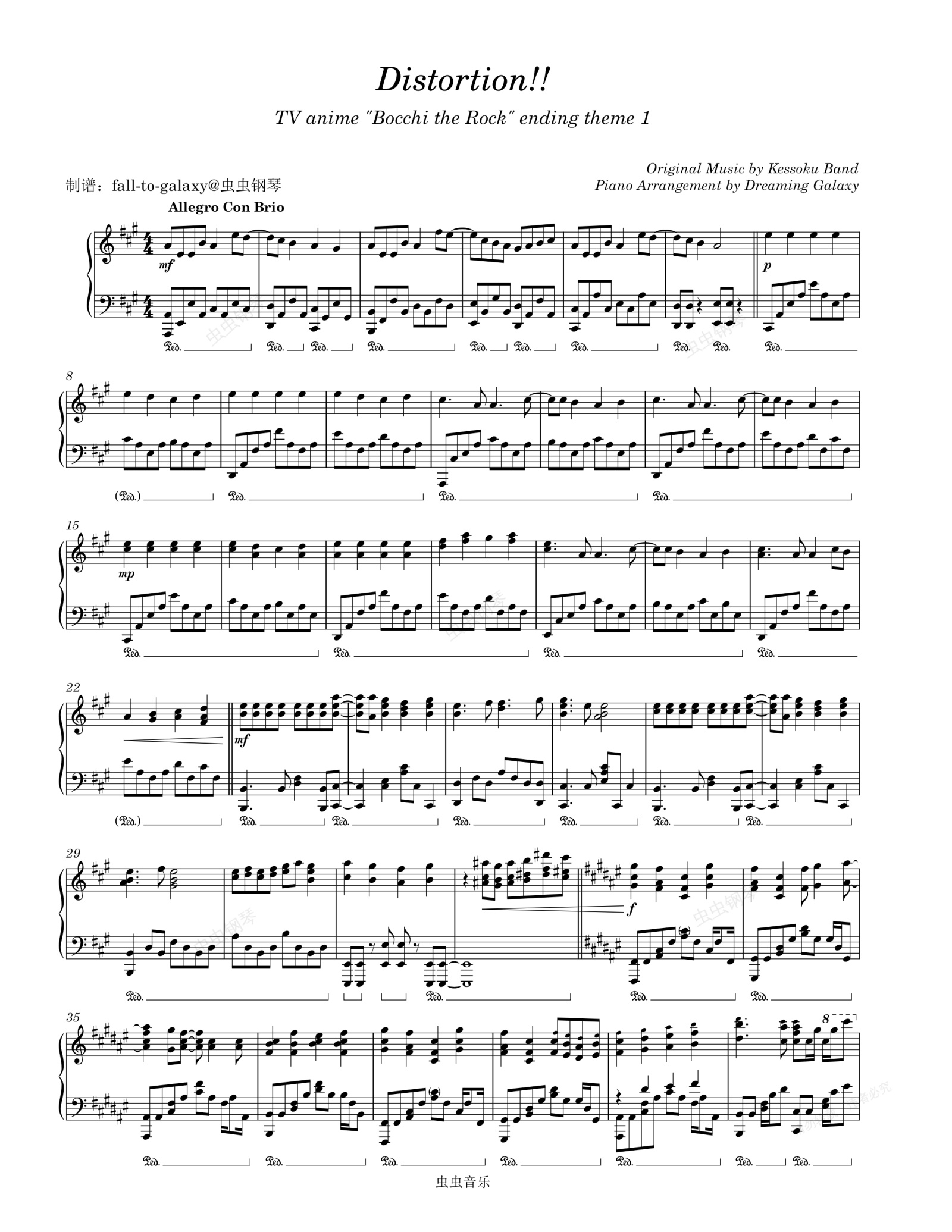 钢琴谱:孤独摇滚ed1 - Distortion!!