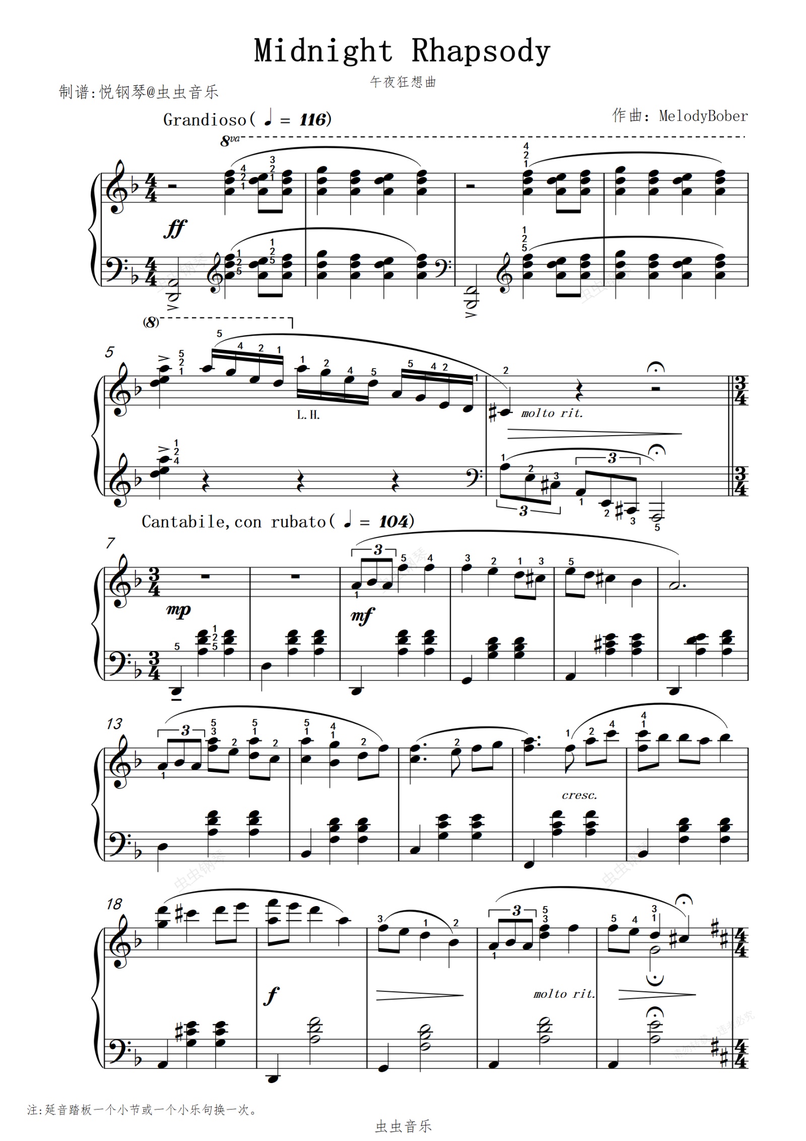 钢琴谱:午夜狂想曲//Midnight Rhapsody【圆舞曲风格、旋律优美、动听】