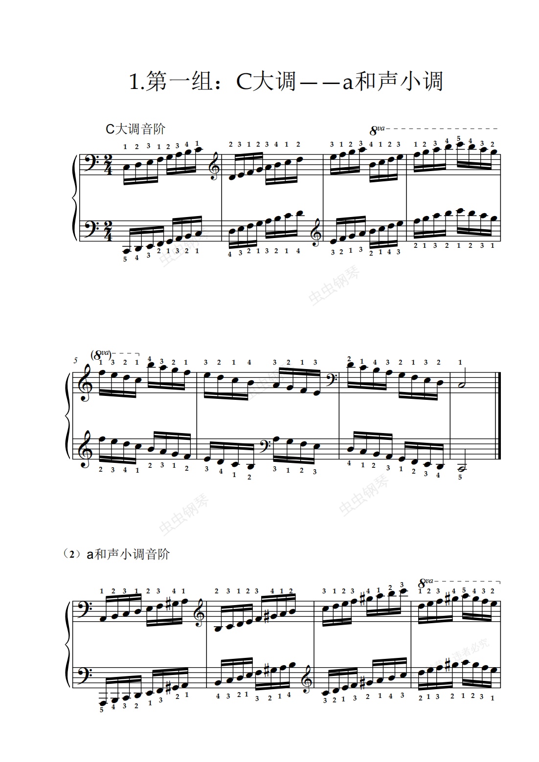 钢琴谱:5级1.第一组:C大调—a和声小调