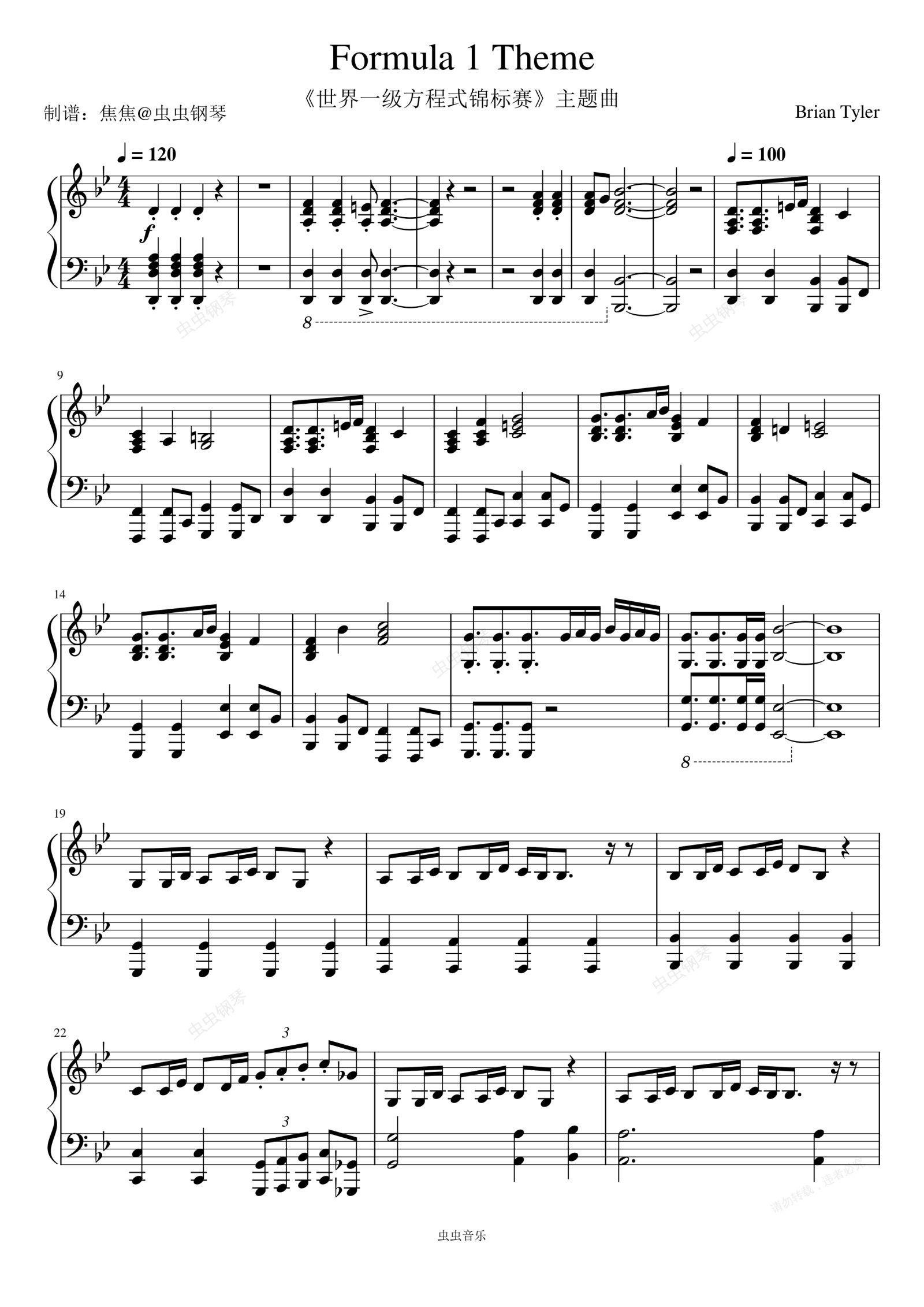 钢琴谱:Formula 1 Theme 《世界一级方程式锦标赛》主题曲