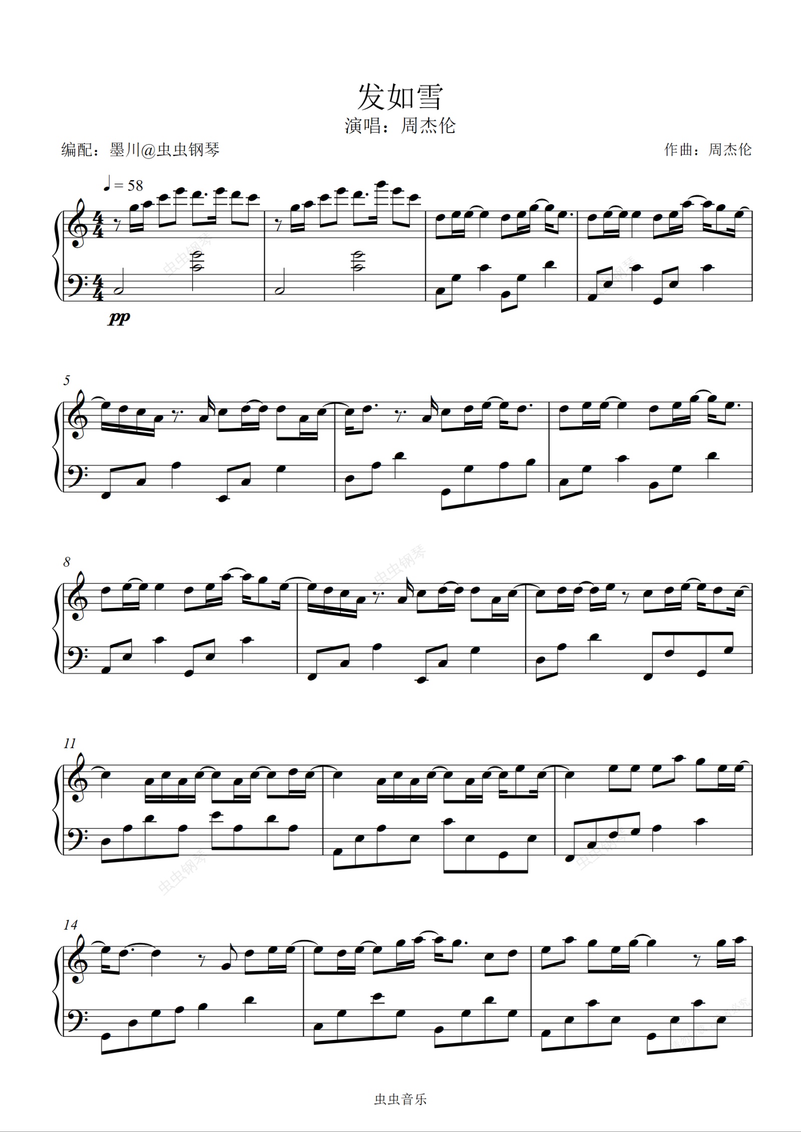 钢琴谱:发如雪—周杰伦—C调编配