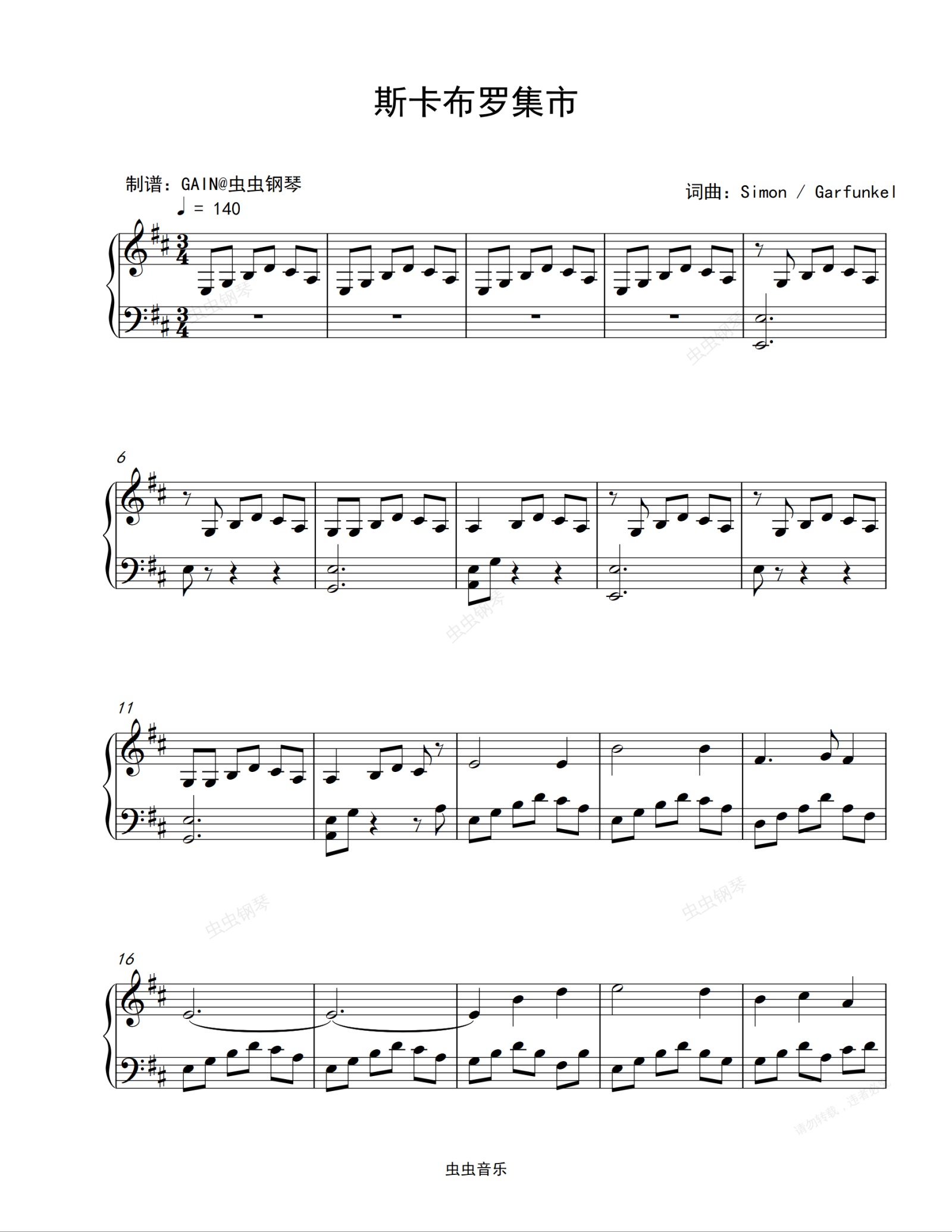 钢琴谱:斯卡布罗集市-Scarborough Fair-Simon / Garfunkel