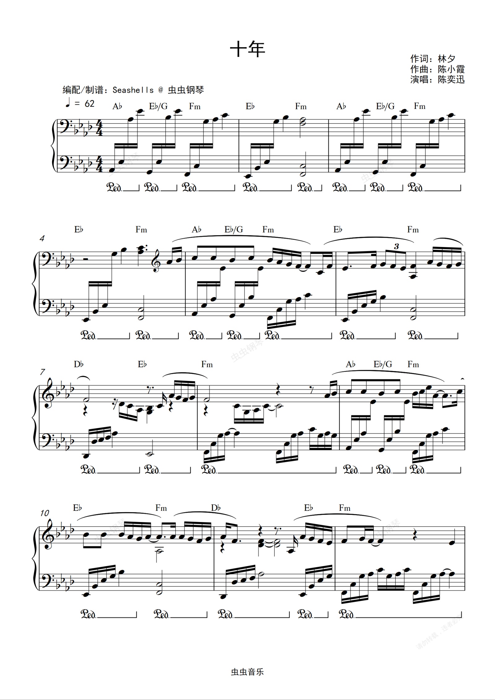 钢琴谱:陈奕迅-《十年》精编钢琴独奏
