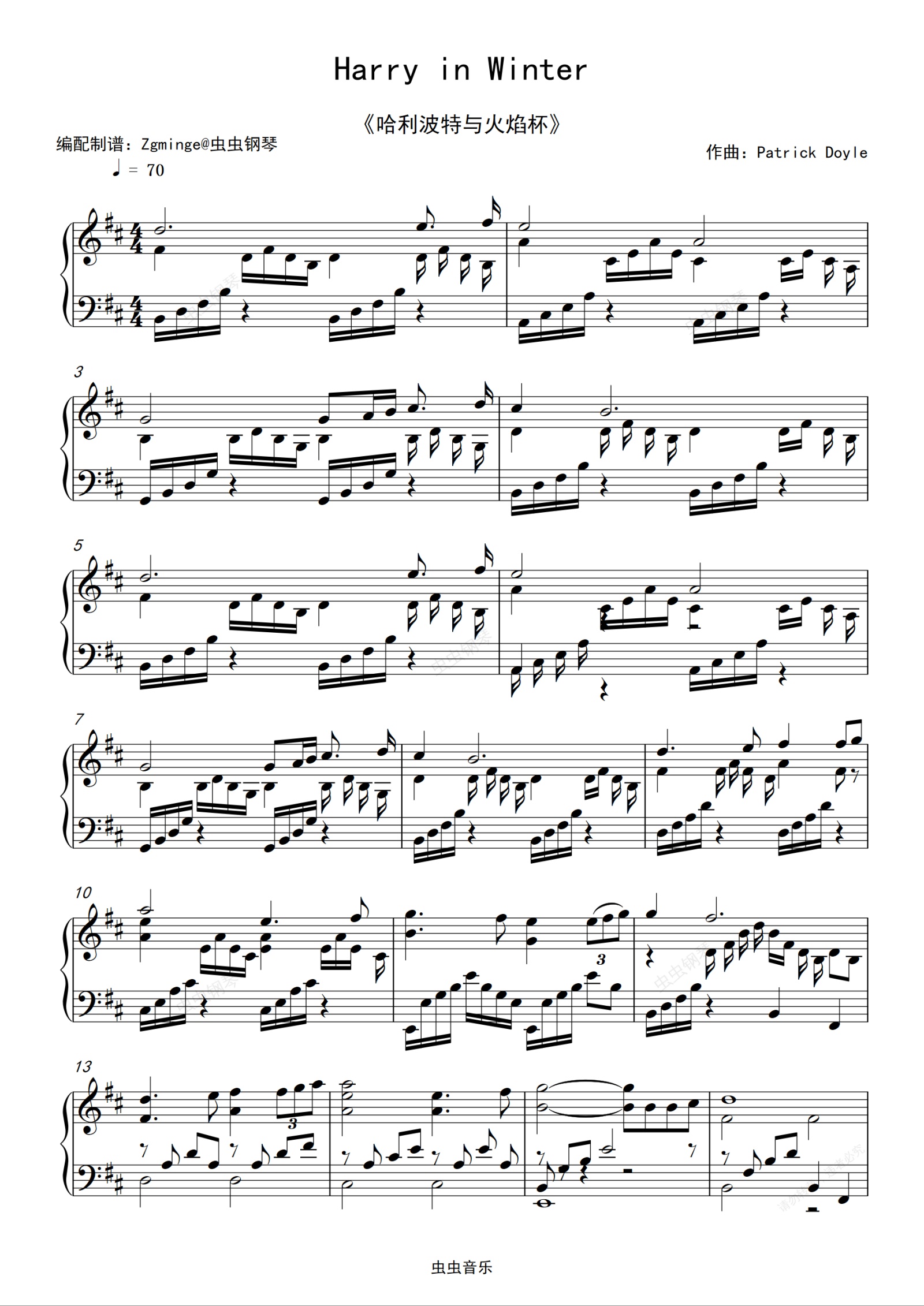 钢琴谱:Harry in Winter 哈利波特与火焰杯插曲