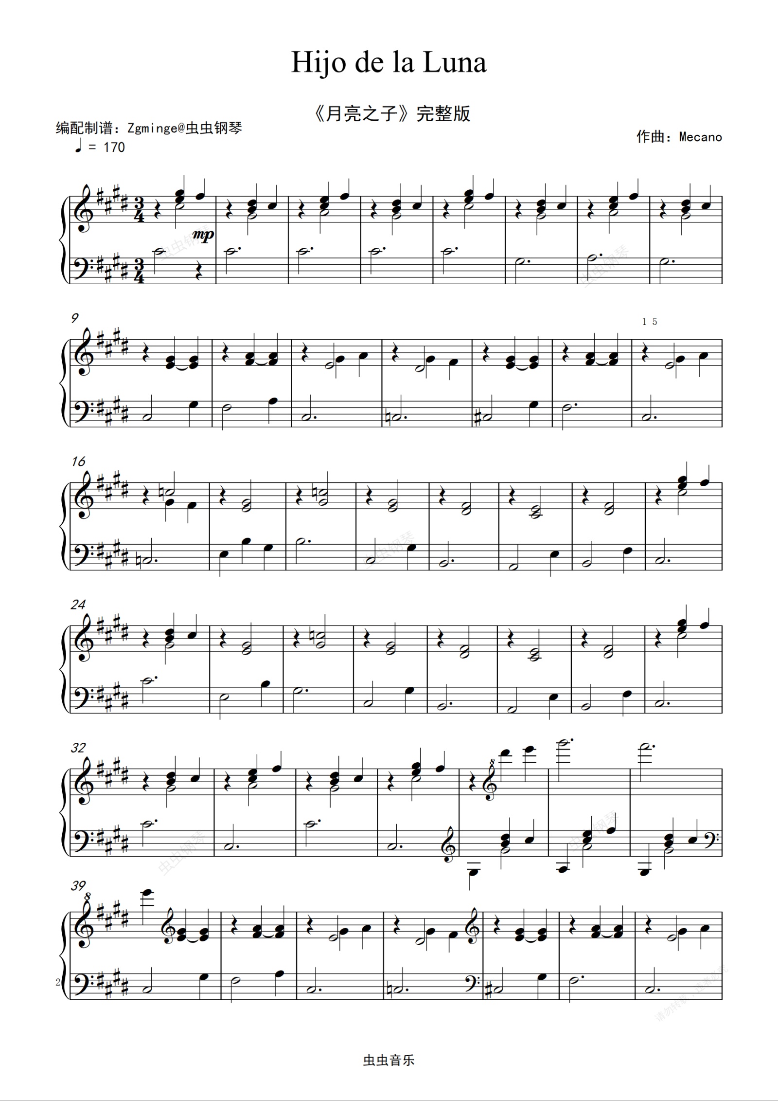 钢琴谱:Hijo De La Luna 月亮之子 精编完整版