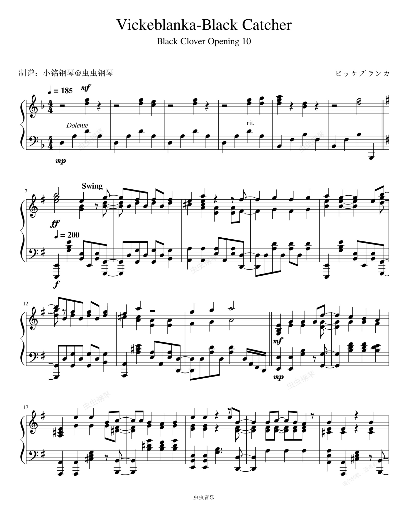 钢琴谱:Black Catcher - ビッケブランカ (VICKEBLANKA)