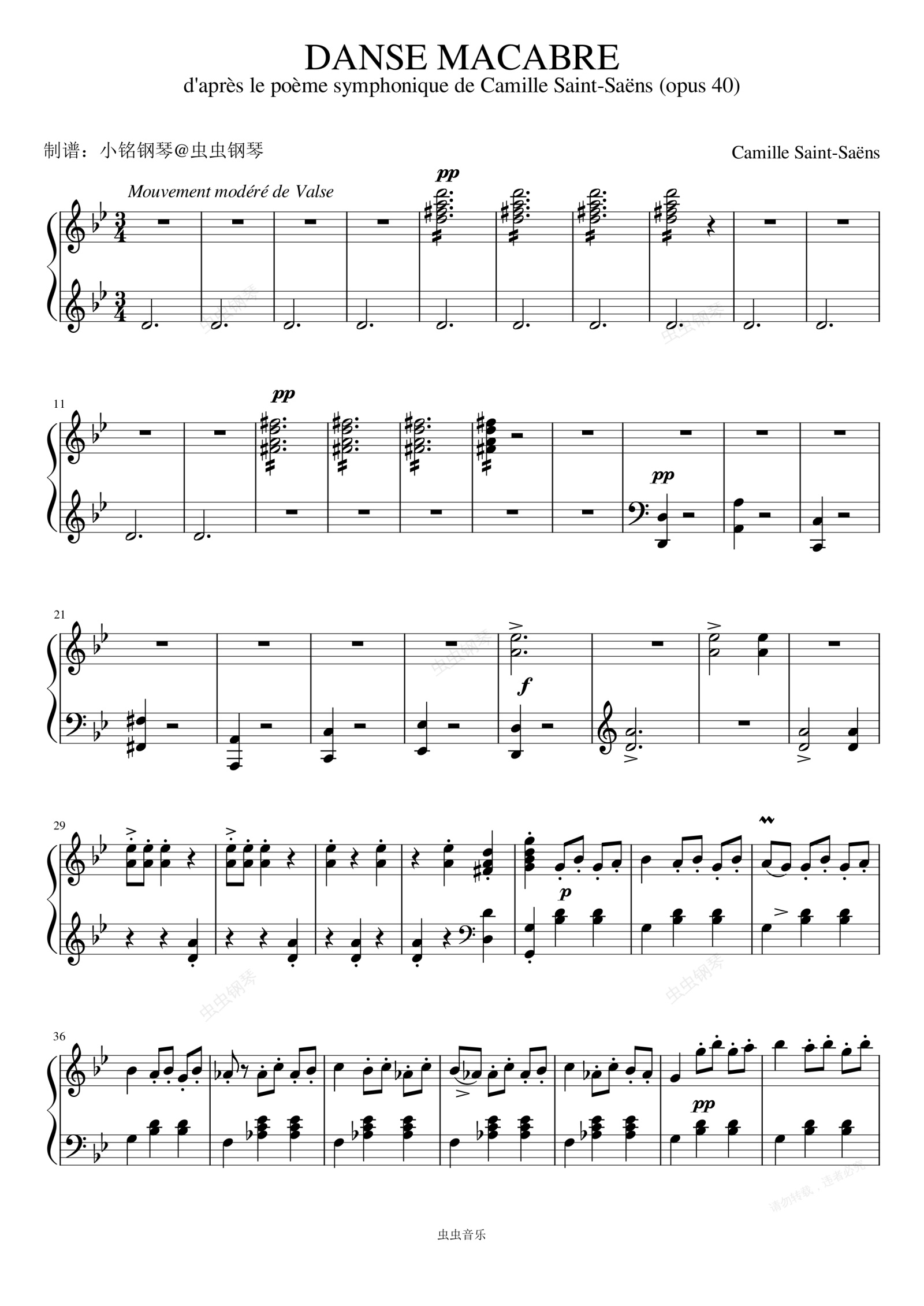 钢琴谱:Danse Macabre (骷髅之舞) - Camille Saint-Saëns