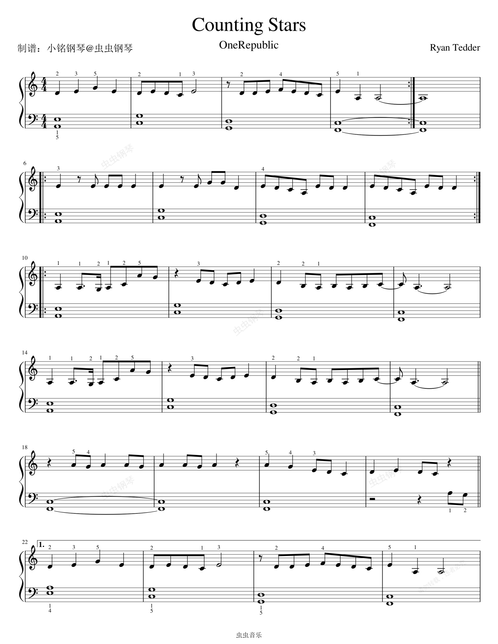 钢琴谱:Counting Stars - OneRepublic (共和时代)