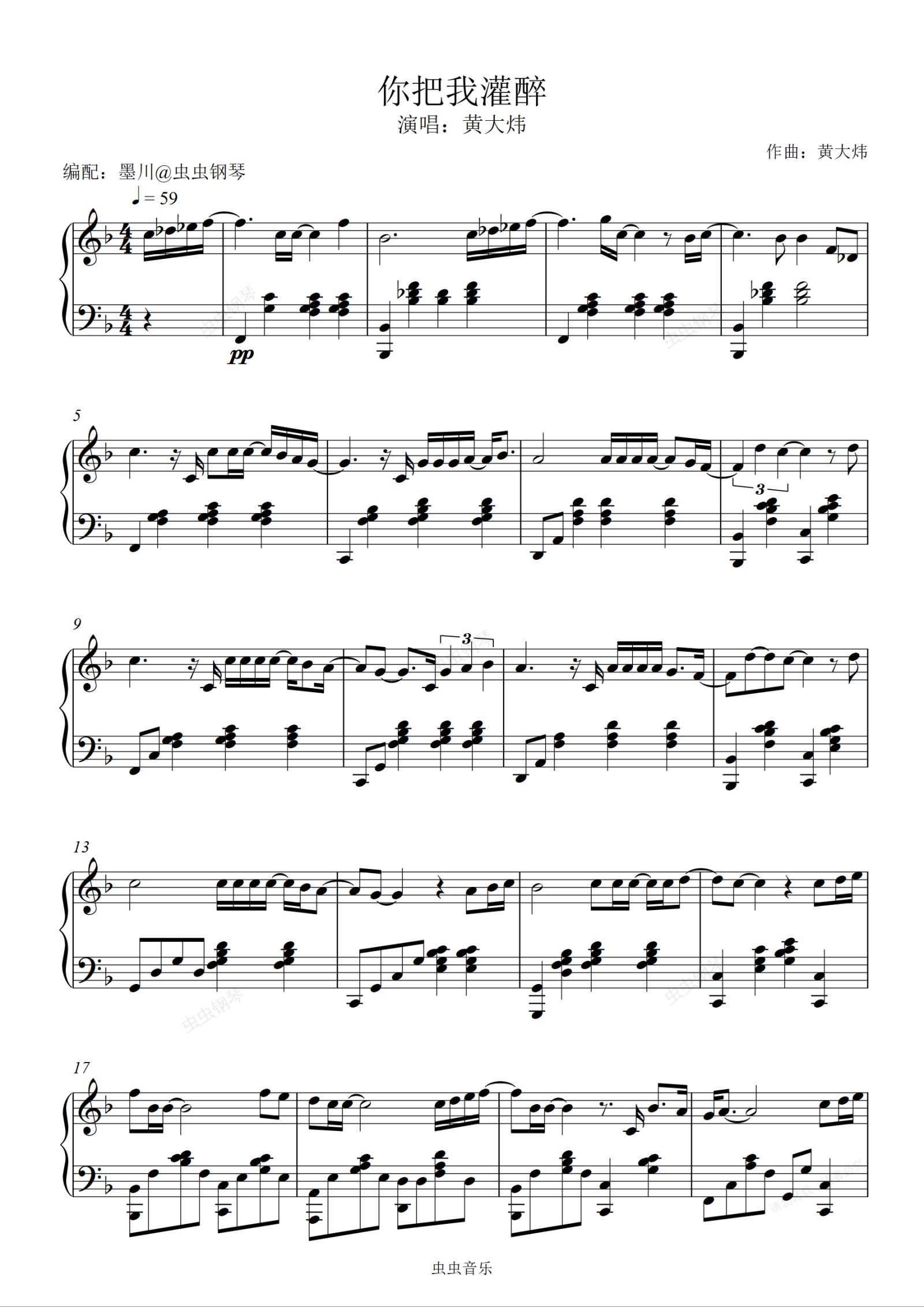 钢琴谱:你把我灌醉—黄大炜—F调编配