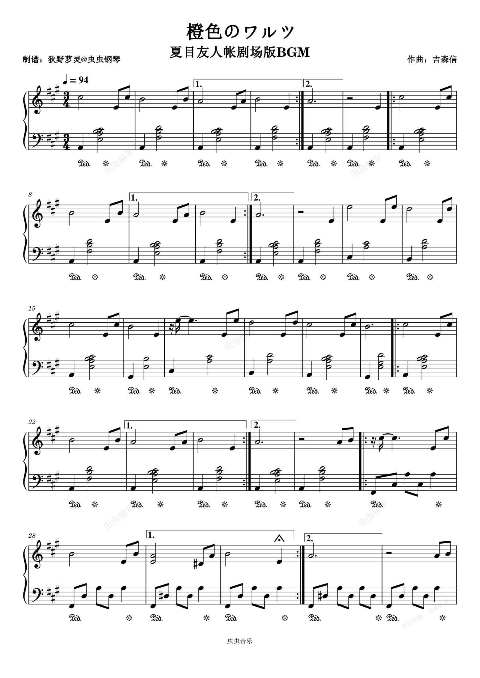 钢琴谱:橙色のワルツ