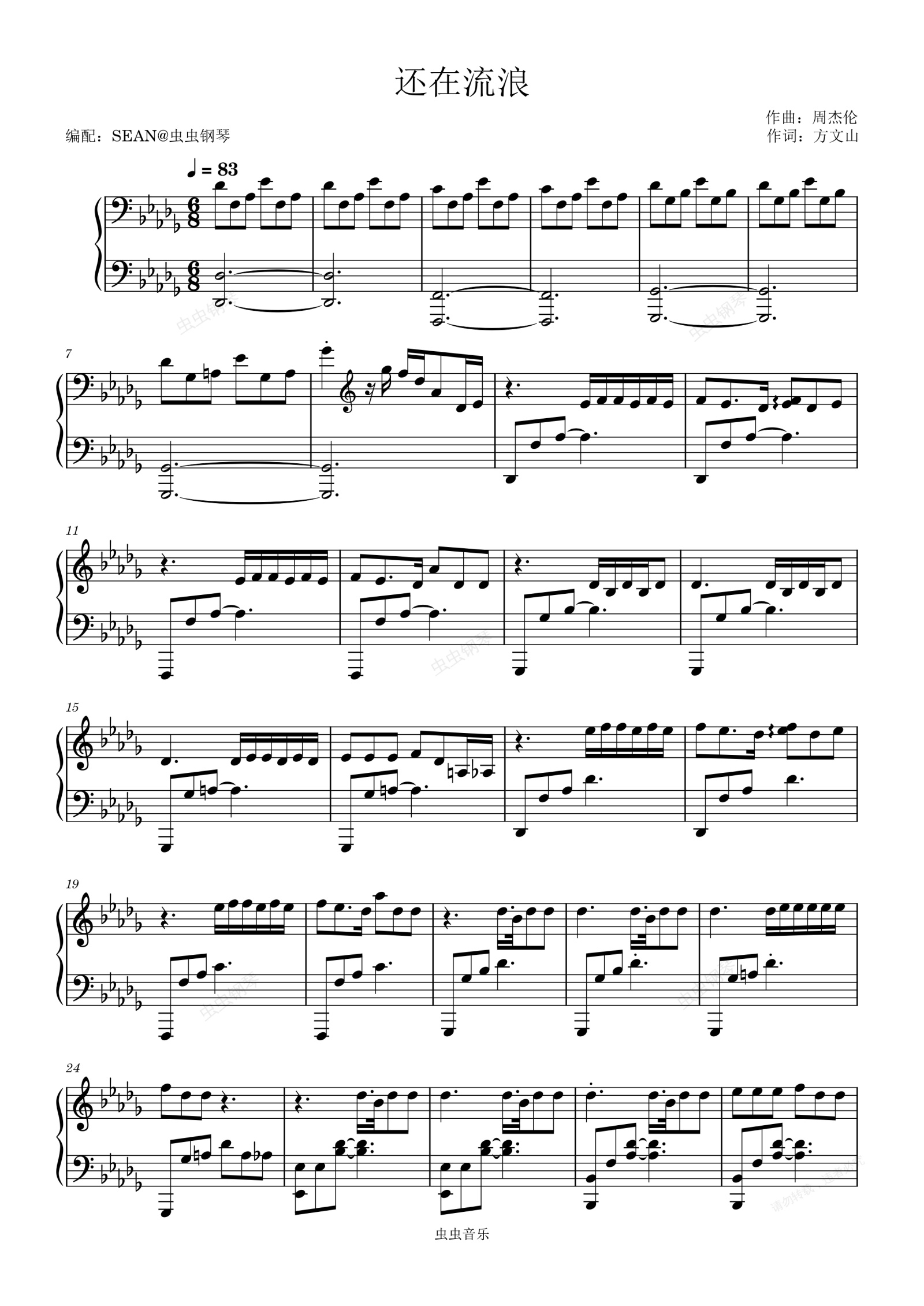 钢琴谱:《还在流浪》周杰伦-C#调 『 SEAN 编配 』简单唯美演奏版