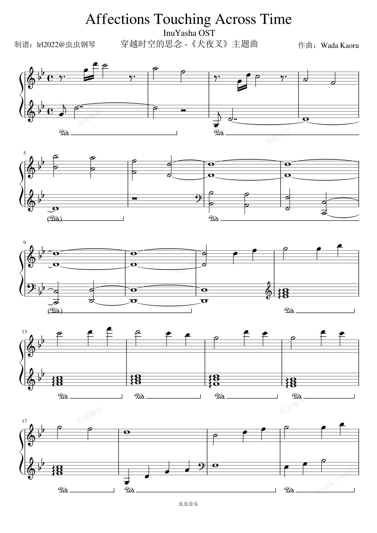 钢琴谱:Affections Touching Across Time -穿越时空的思念 -《犬夜叉》主题曲-(InuYasha OST)